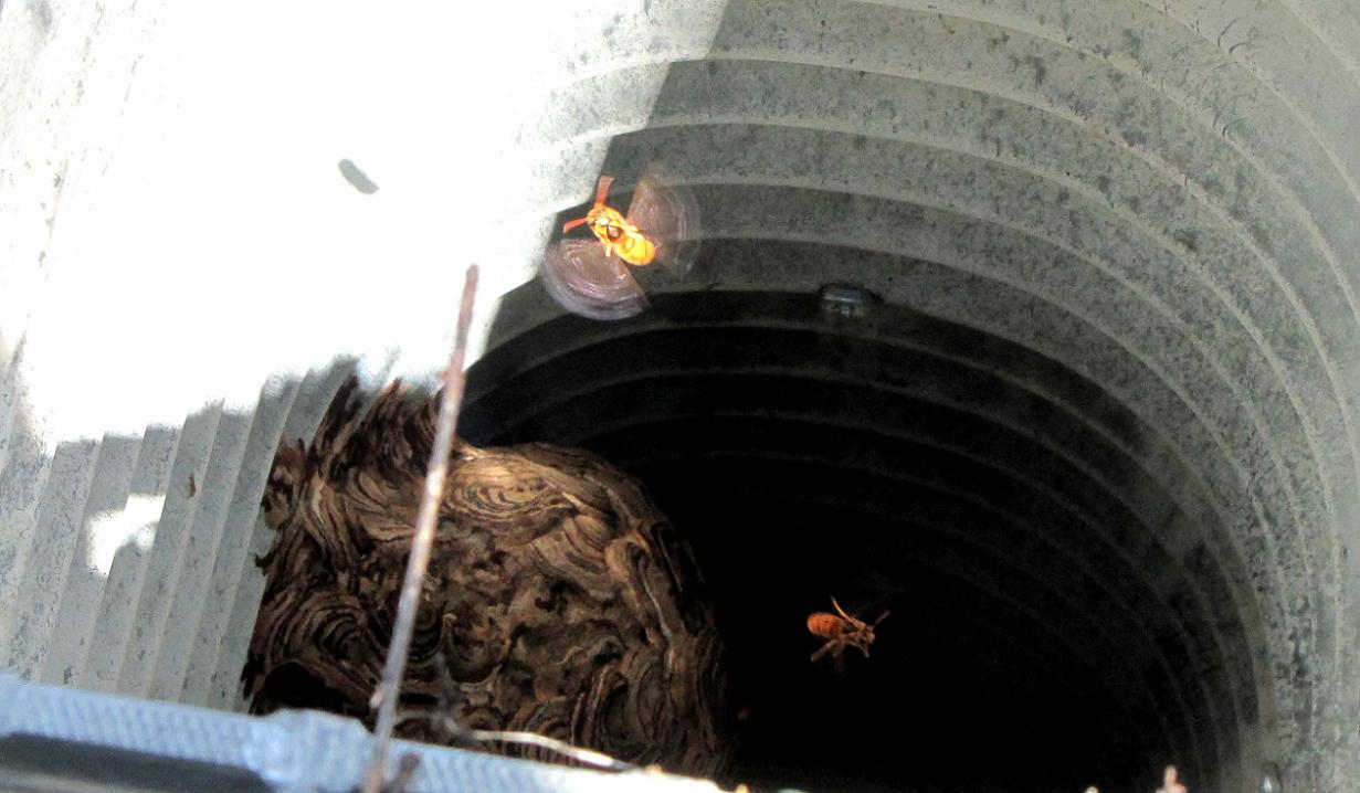 刺された蜂の巣に、ふたたび近付いて撮影したのには驚きました。