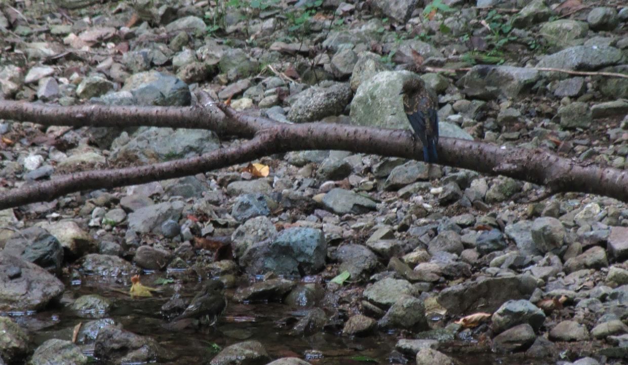 青少年の森の渓流、この場所には小鳥たちが水浴びに来ます。今年この場所で確認した小鳥の水浴びは、イカル・カワラヒワ・サンコウチョウ・オオルリの4種。