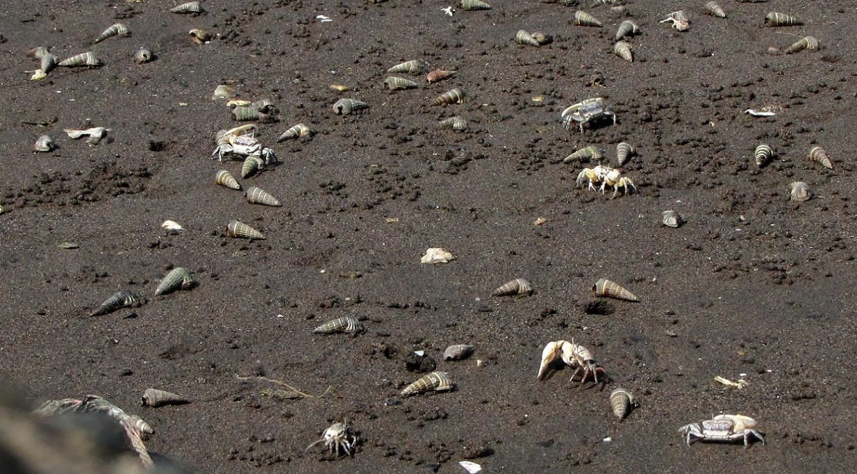 危険を感じると巣穴へと逃げ込み、しばらくすると出てきてエサを漁っていました。可愛い仕草に見入ってしまうほど・・・。