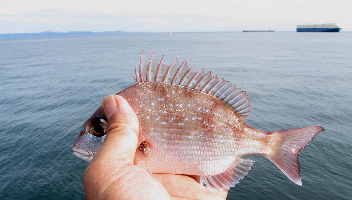 深いタナではマダイの仔、フグなどが邪魔していました