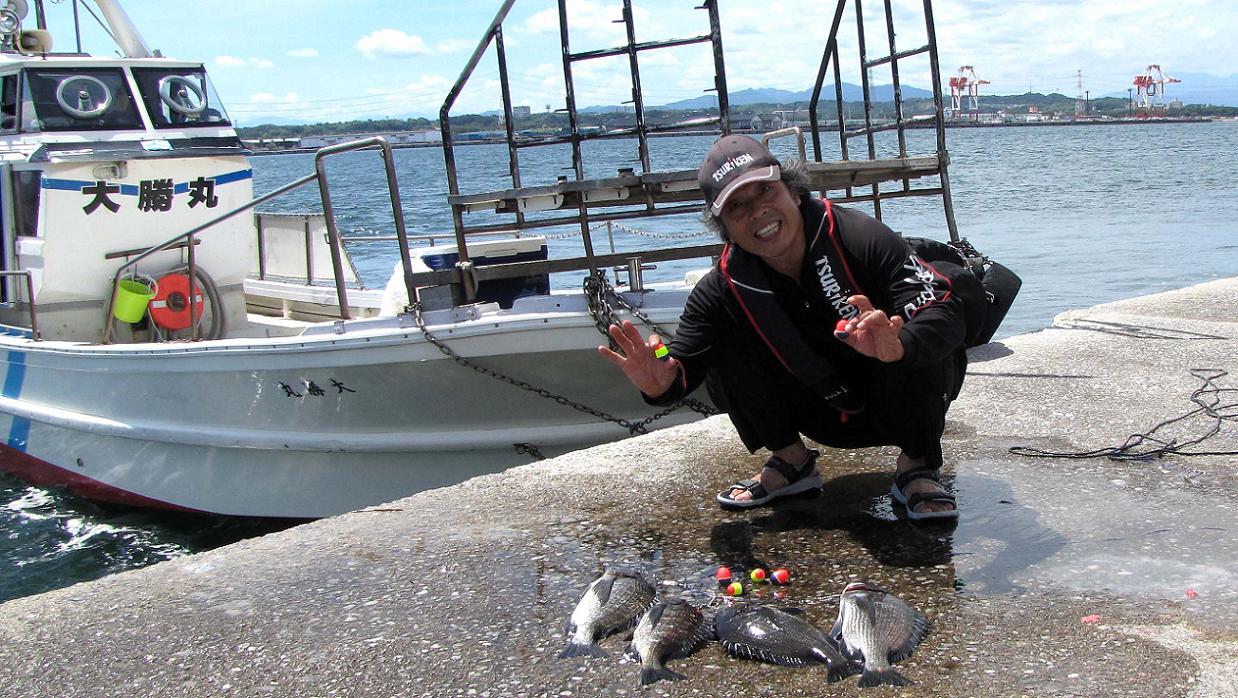 7時出港15時納竿目標の決戦です。70cmオーバーのマダイが10ポイント、50オーバーのチヌ・マダイが5ポイント、40オーバーは2ポイント30cm以上40cm未満は1ポイントで、5ポイント以上獲得で取材終了の工程です。