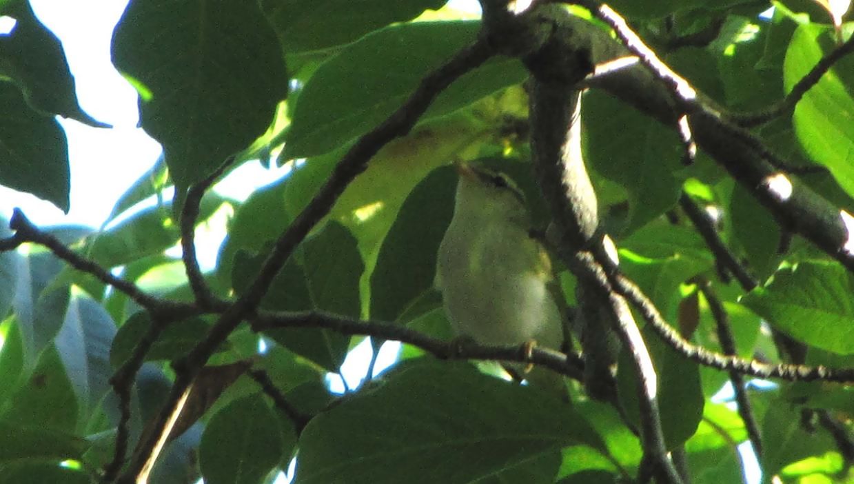 同じ所でエゾムシクイか、センダイムシクイを確認しました。鳴かないので判断出来ません。メジロに似た動きをしていますが、どちらの場所も1羽ずつ見ました。