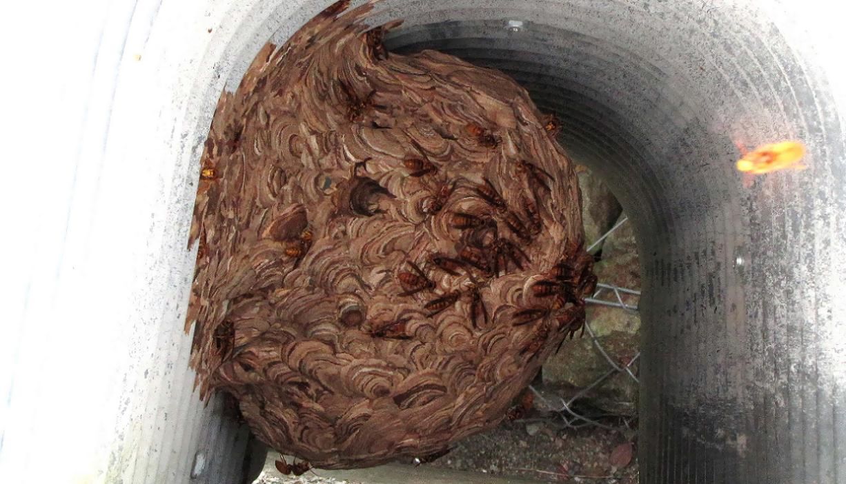 出入りするハチも多く、口には何かを咥えて戻ってきています。巣の周りのハチの数も断然多く、今度は小便を掛けられないですよね。