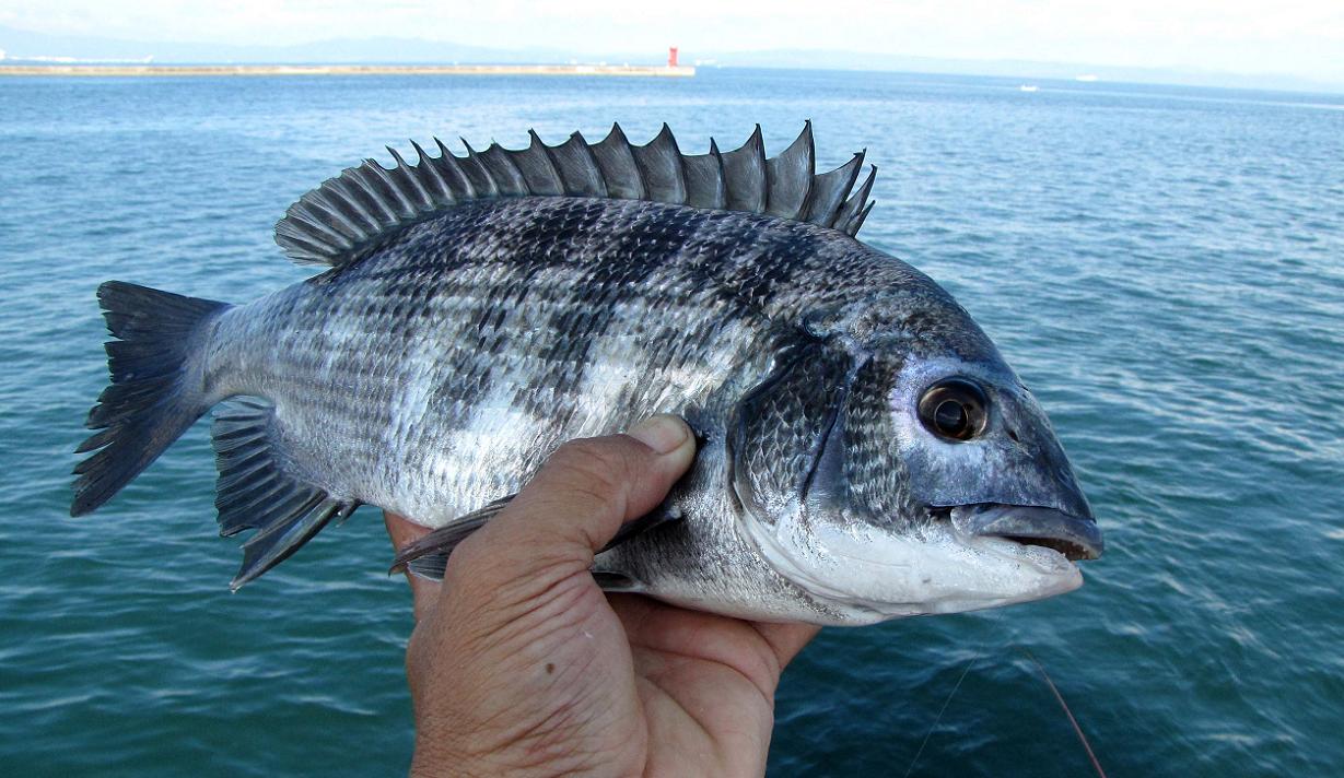 これらのエサ盗りは20mほどの遠投で交わせます。時々コッパグレや30cm位のグレも釣れましたが、オキアミボイルのサシエで、2枚のメイタ(チヌと呼べない小型)と1枚のチヌを引き出す事に成功しました。