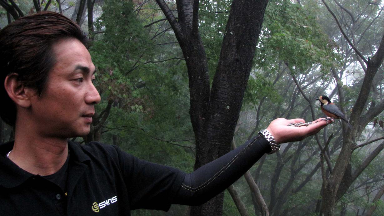 私は山の友人達に会いに行きます。しばらくすると猪熊君から電話が入り、ヤマガラを見ておきたいとの事です。七瀬川自然公園で待ち合わせて、いつもの餌場に向かいました。