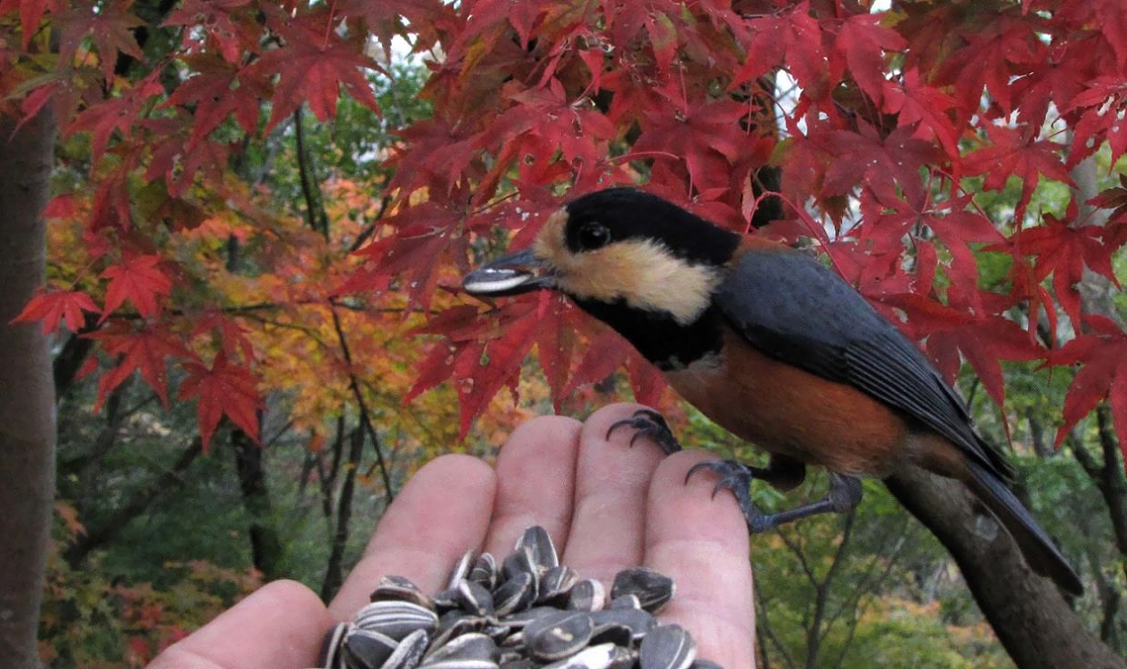 紅葉が進んでおり、これから一週間くらいは綺麗なモミジを堪能出来そうです。ヤマガラの他にはシジュウカラ・ゴジュウカラ・エナガ・ヒガラ・メジロ・キクイタダキ・シロハラ・ジョウビタキ・ルリビタキ・ホオジロ・ミヤマホオジロ・ソウシチョウ・ガビチョウ・モズ・カワラヒワ・ハシブトガラス・ヒヨドリ・イカル・キジバト・アオバト・ハイタカ・カケス・ツグミなどの声や姿を、ここ数日間で確認しています。