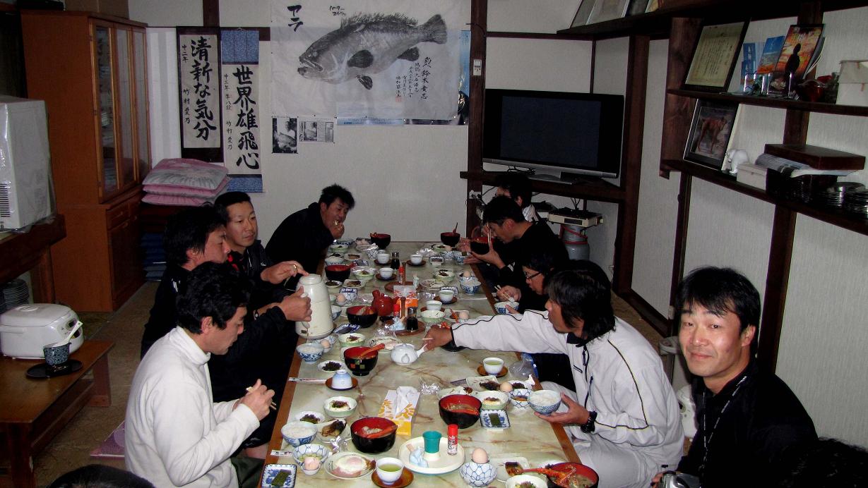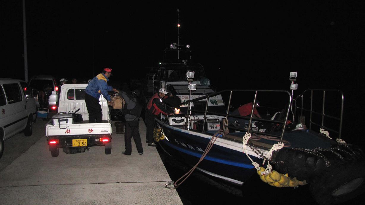 朝5時過ぎに起床、5時30分には朝食・・・なんといっても伊勢海老の味噌汁は天下一品です。食事が終わると送迎用のワゴンとトラックで港へ移動し、二日目の釣りへと出発するのです。