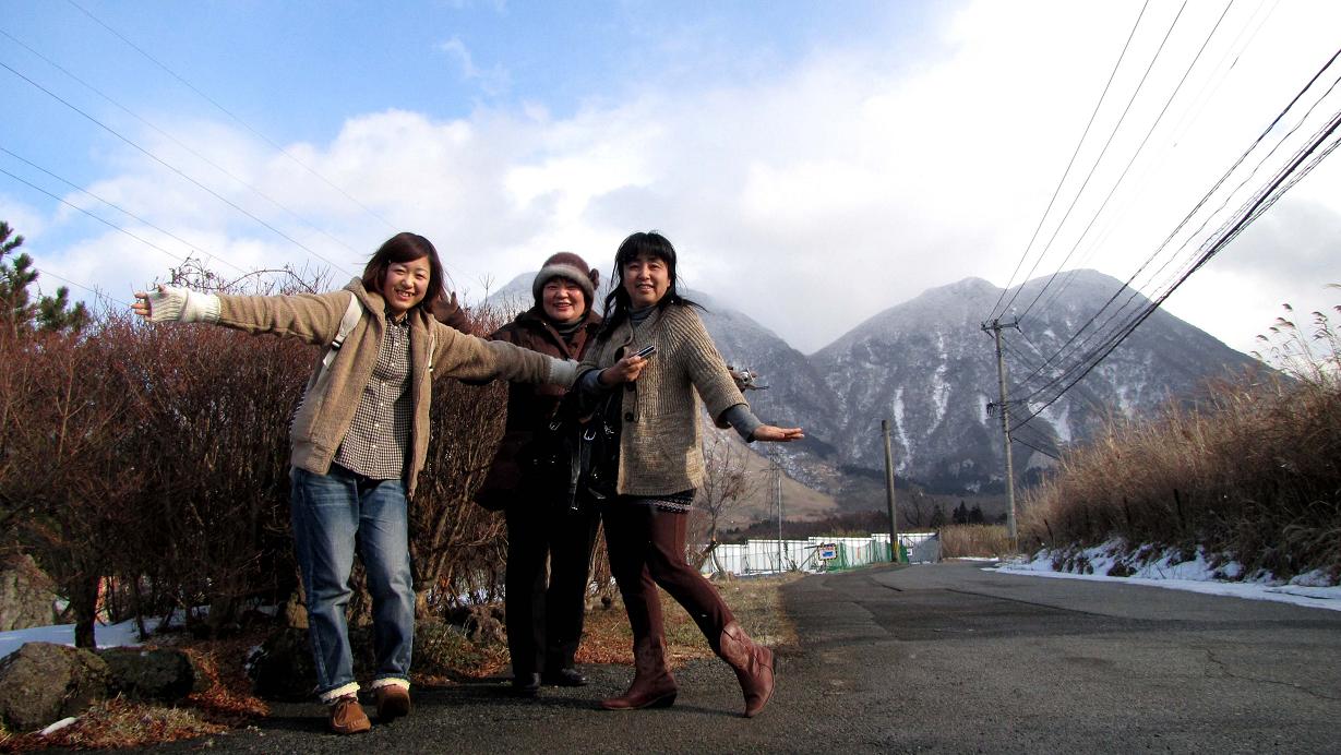 由布市、由布岳の北西斜面をバックに