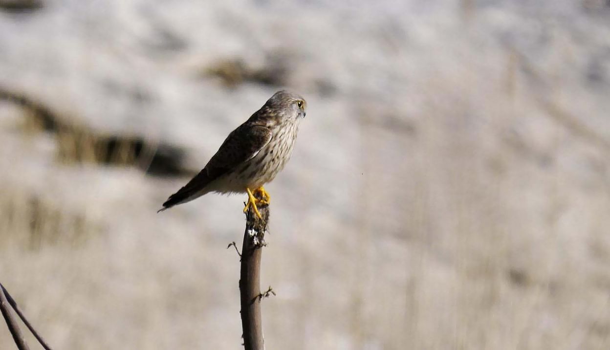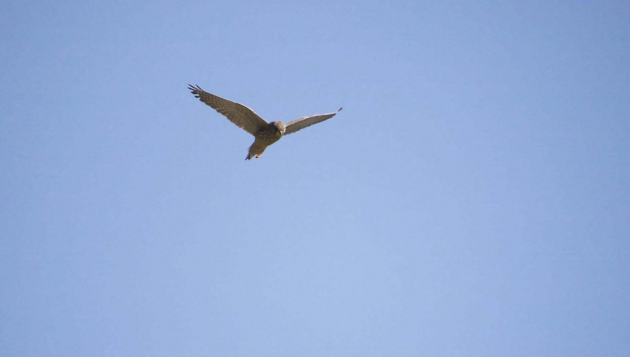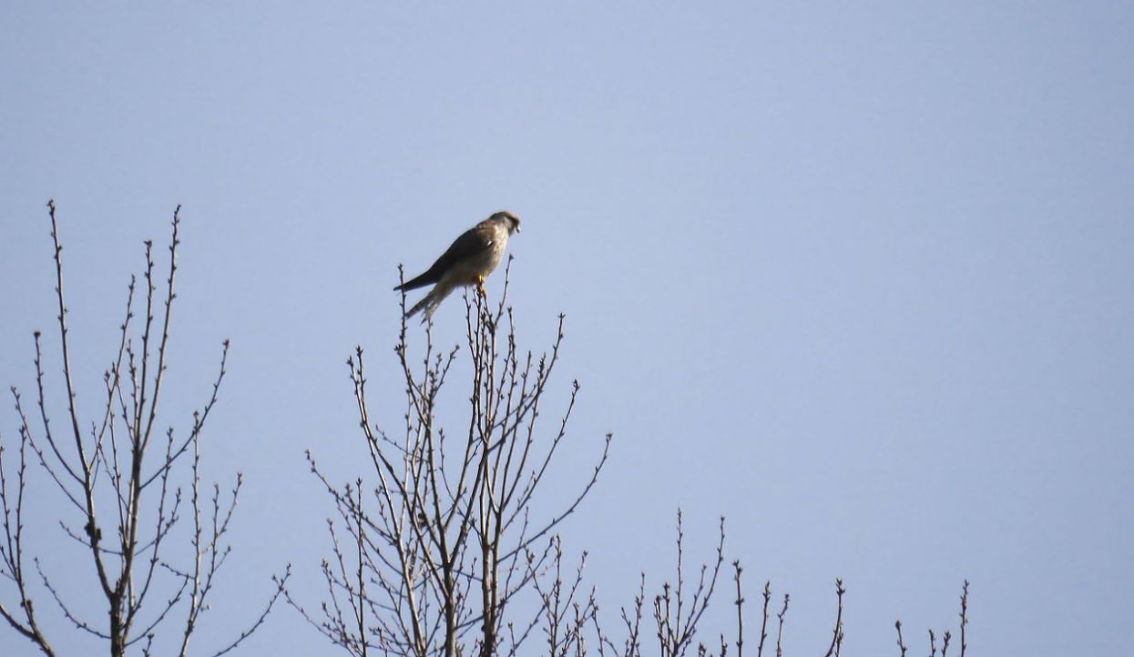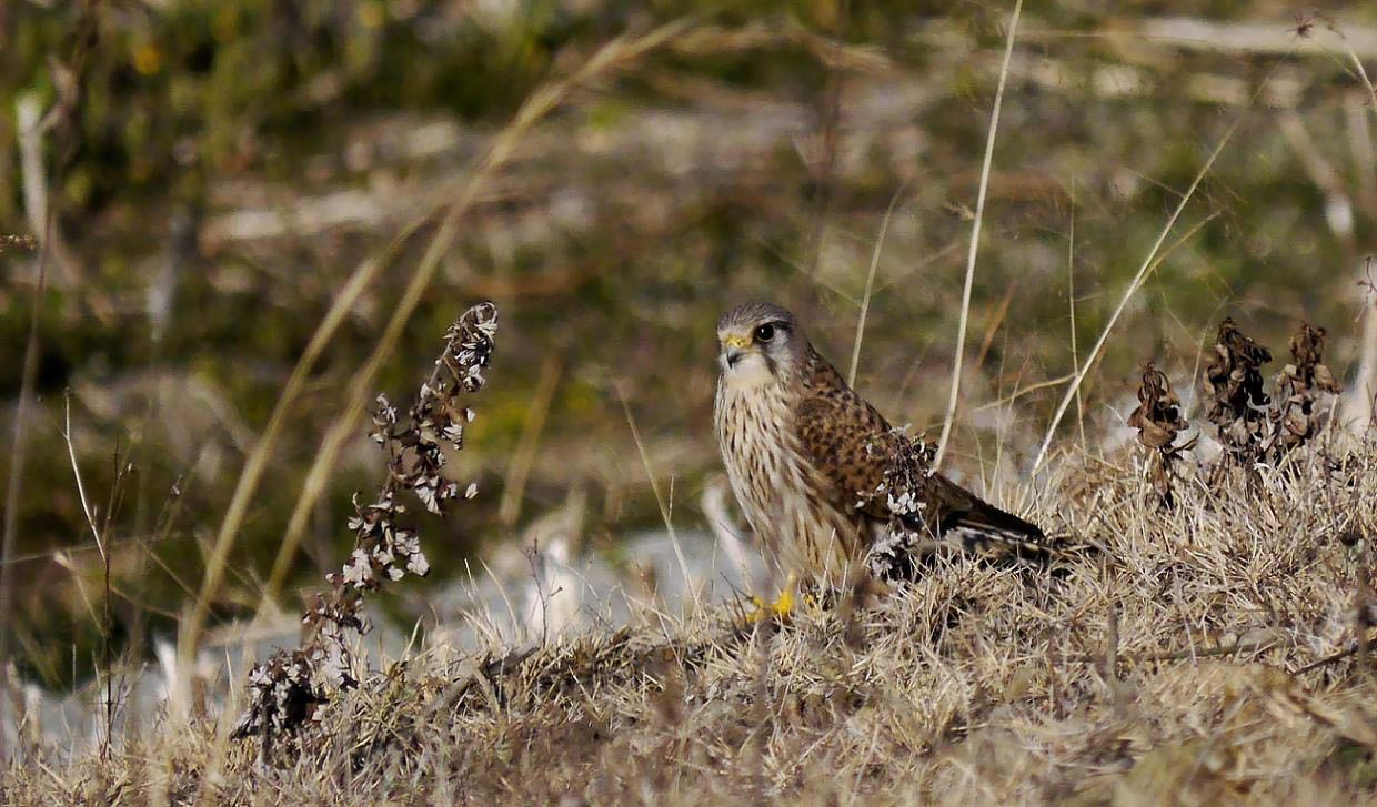 夕方、カワラヒワやスズメを追いかけていましたが、狩りには失敗していた様です。これもコチョウゲンボウの特徴です。