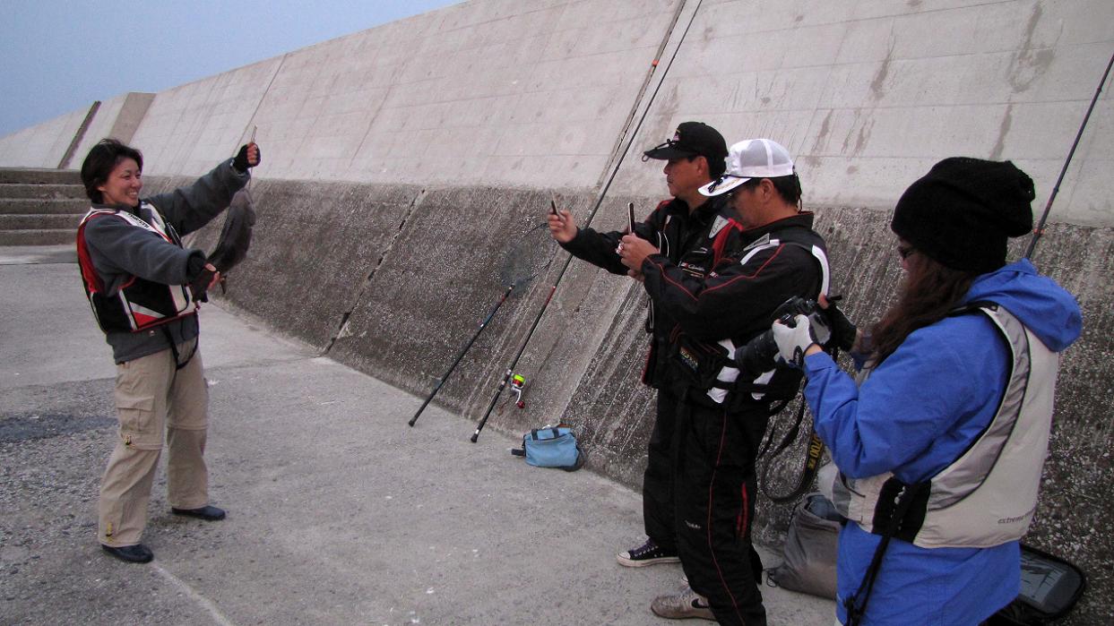 竿を出したのは16時前?18時過ぎまでの夕マズメ狙いです。17時過ぎに沖縄組が6kg級、18時過ぎに東京組が4kg級を仕留めてくれました。