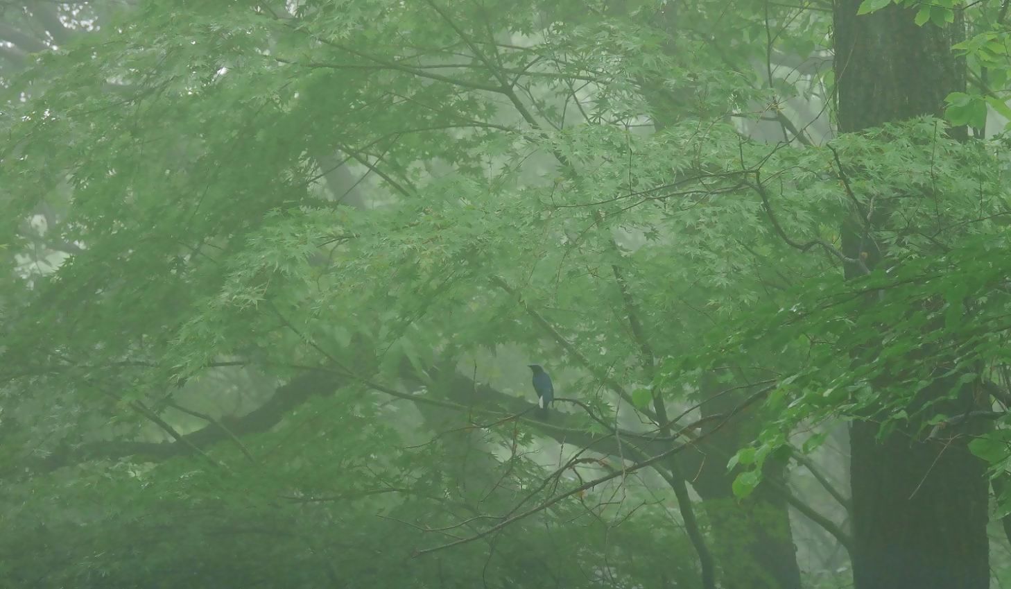 13m先?に来たオオルリ、無修正だと霧が良く見えます