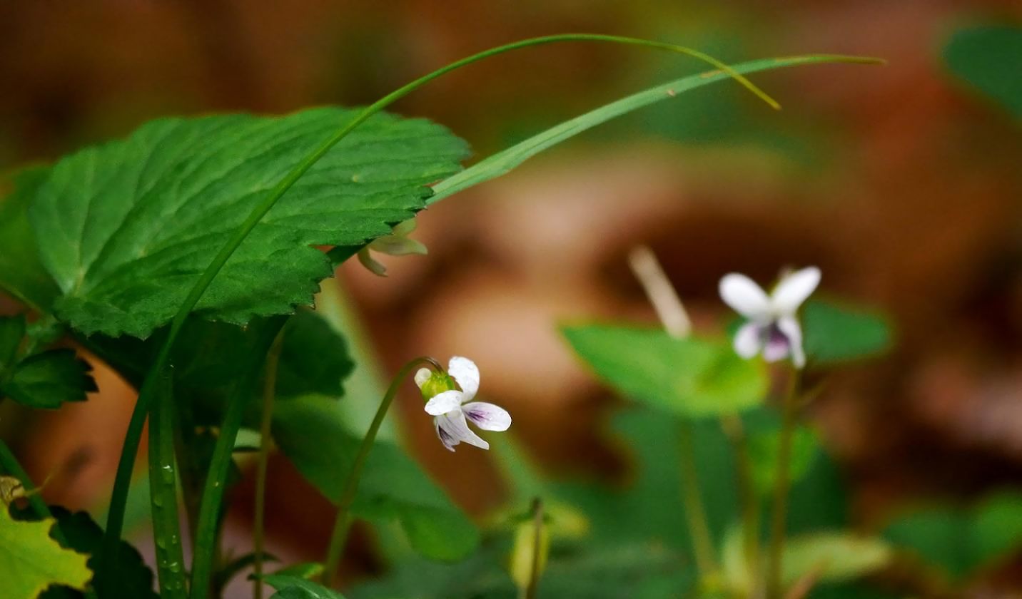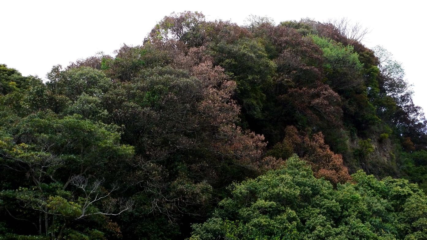 遠くの白はミズキ、手前はクズとアカメガシワ