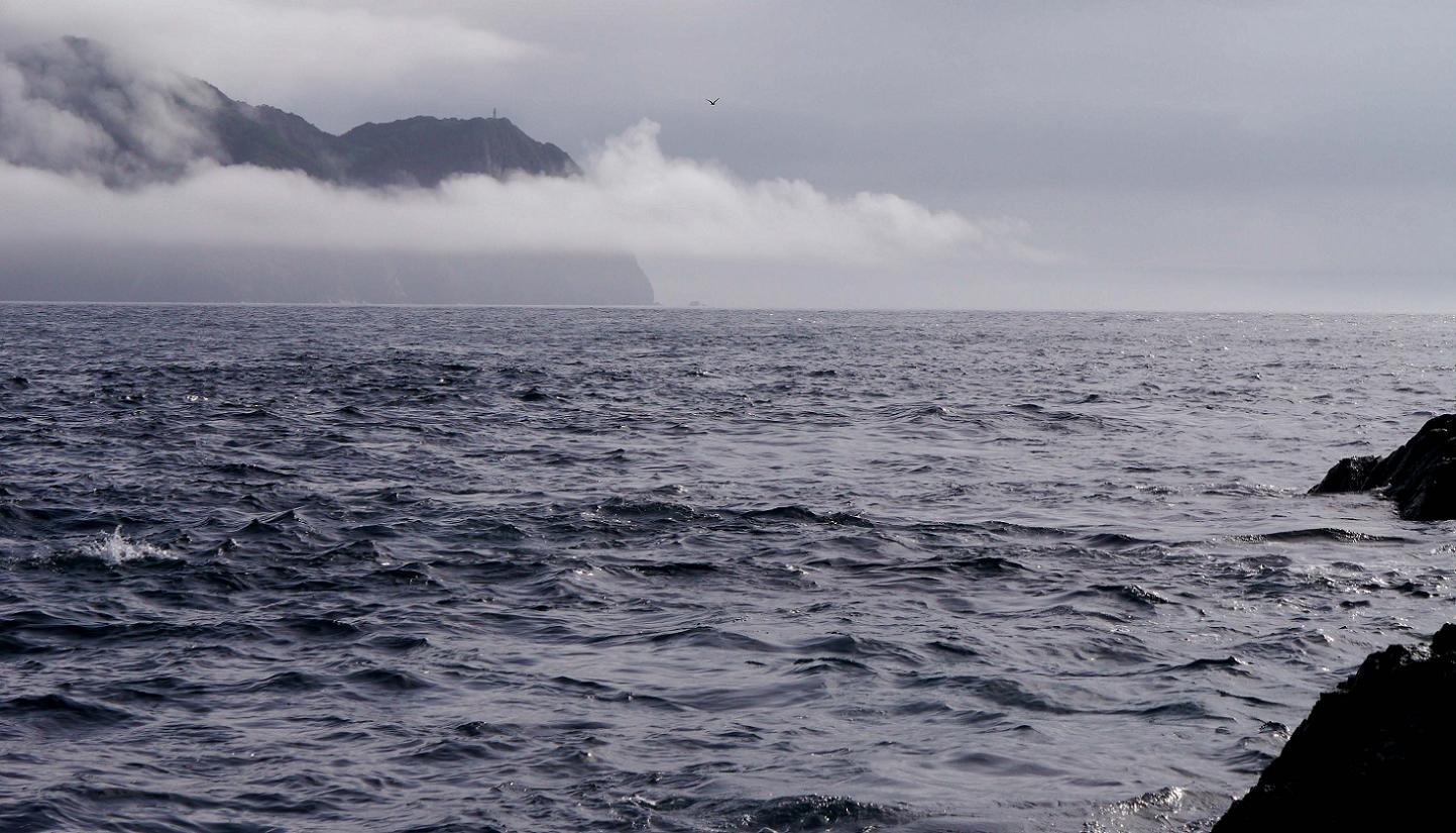 北に見える鶴御崎半島に霧、少し幻想的ですね