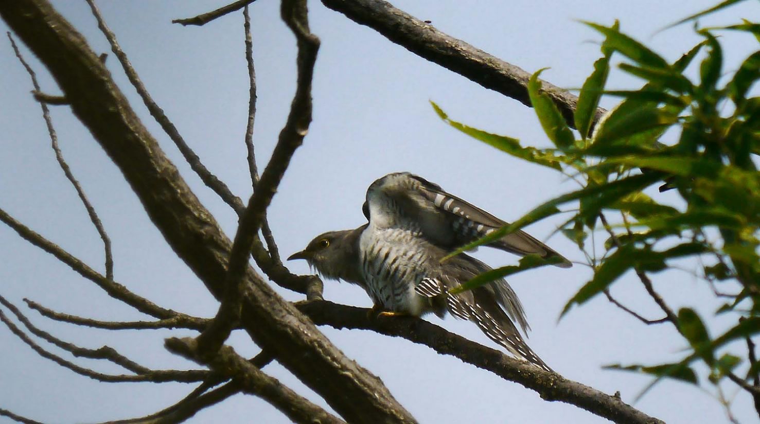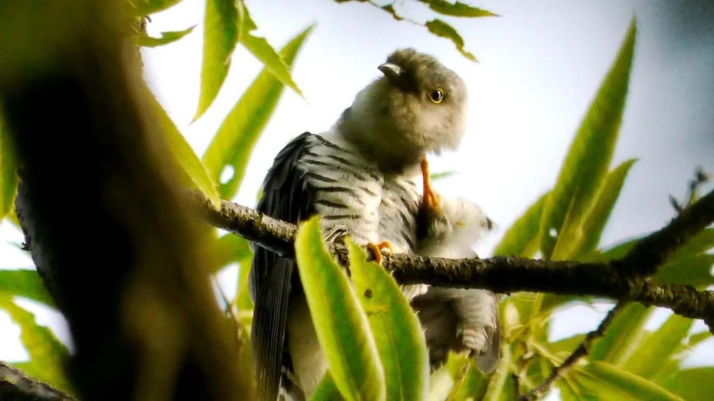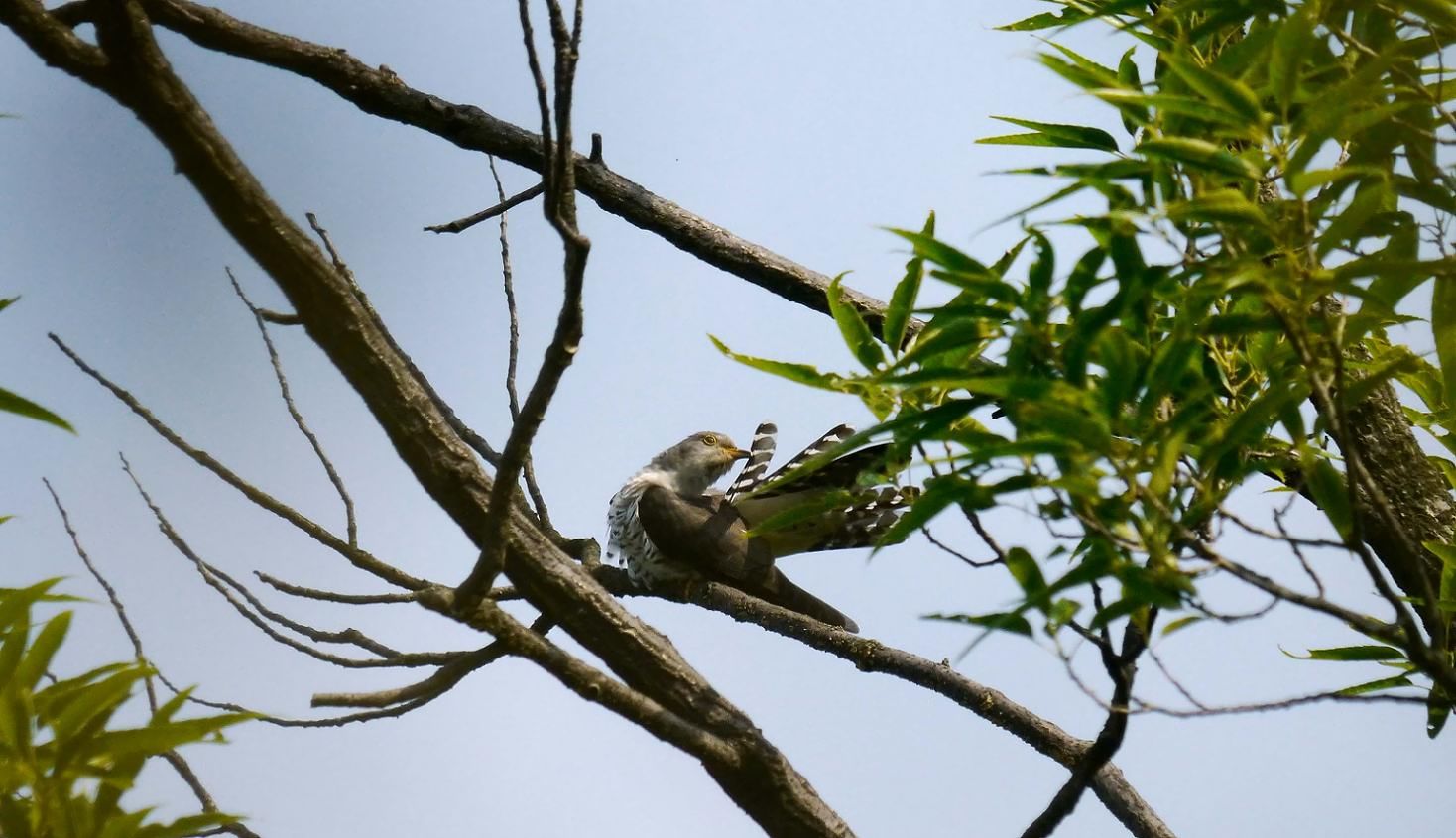 山の頂上付近や、尾根の木の茂った枝に入って鳴くホトトギス。