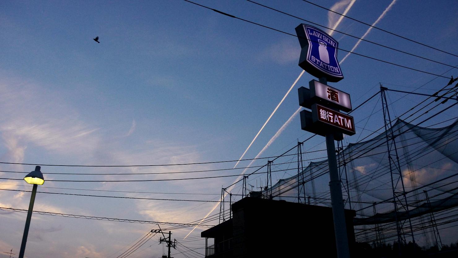 今朝の大分市は晴れ間が出ていましたが、飛行機雲が長く伸びています。