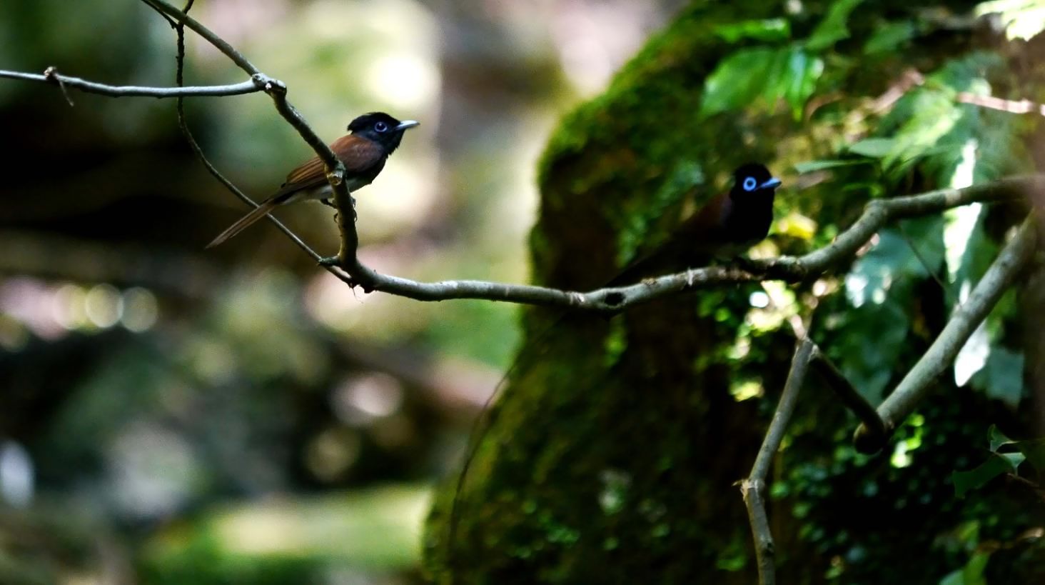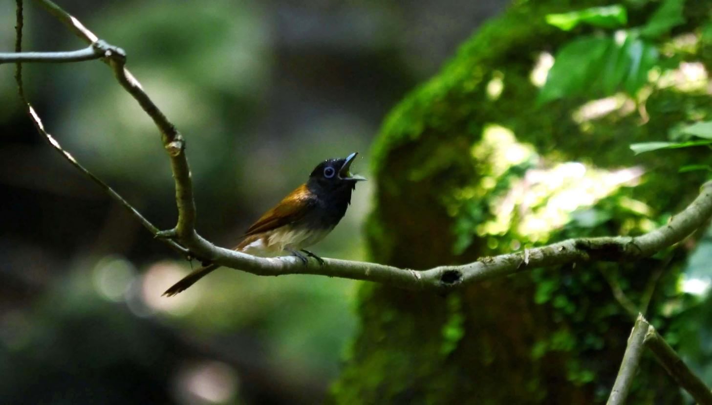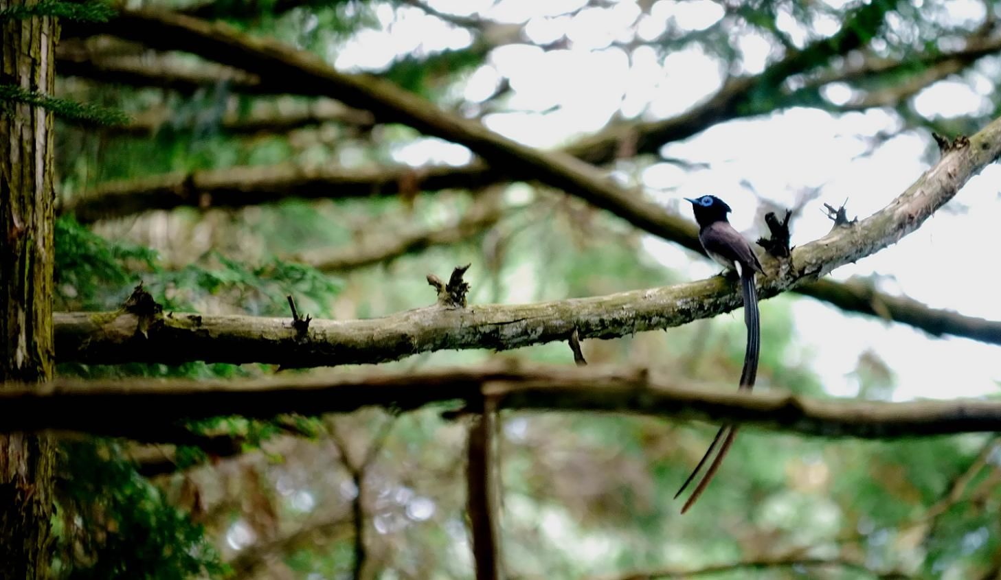 サンコウチョウは、私が子供のころから追い求めていた小鳥で、オスの長い尻尾が魅力的です。通常は樹間をヒラヒラ舞いながら、羽虫などを捕食しています。でも高速で移動する時の速さは、普通の人達は見る事が少ないと判断しています。矢のごとく一直線に飛ぶ速さは、目の錯覚と思うくらいのスピードで、見事というしかありません。