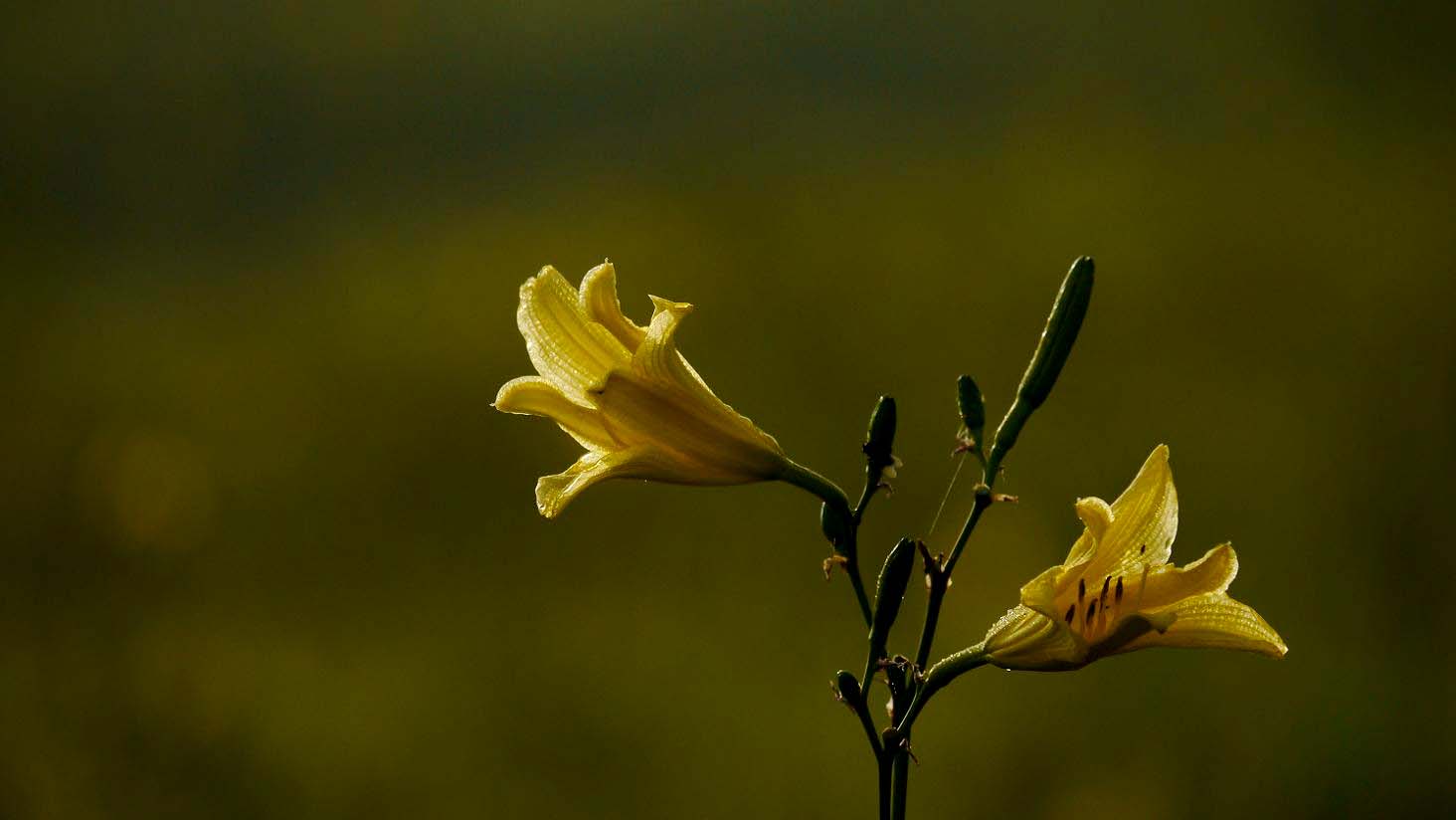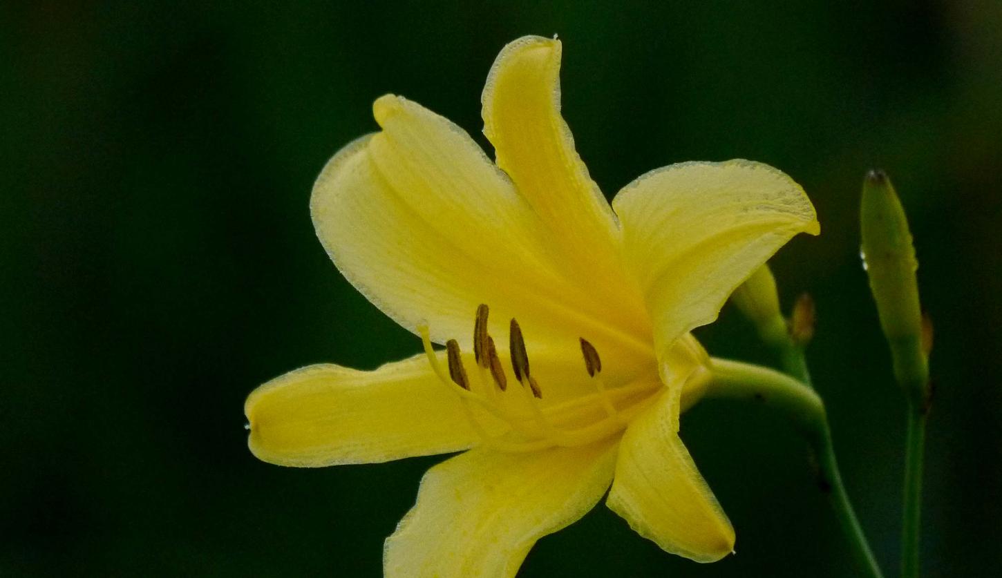 狙いはユウスゲの綺麗な花に留まるコジュリンの姿。