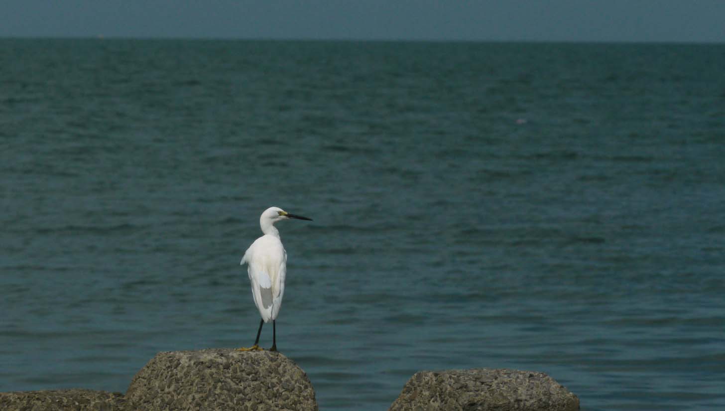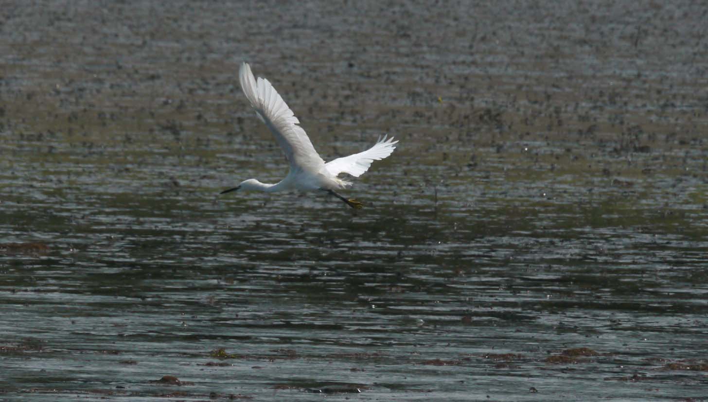 干潟にサギ類は多いのですが、カラシラサギは単独で行動する事が多く、採餌行動はすばやく動き、獲物を追い立てて狙う感じです。でも今日の彼は、見張りをする事が多くなっていました。猫・ハヤブサ・私に相当警戒したからでしょうか?