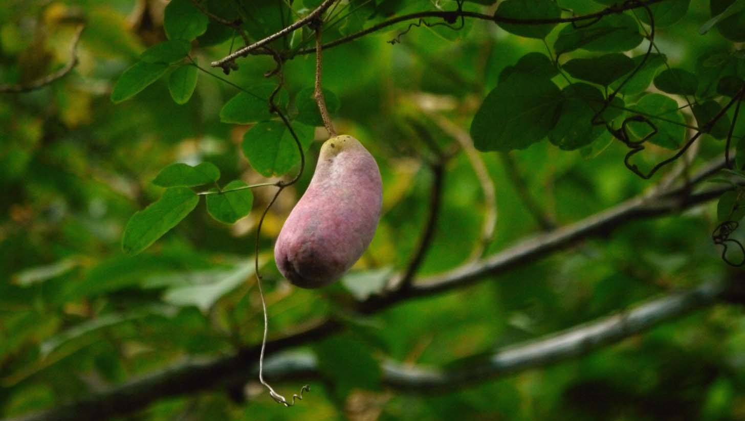アケビに比べ丸っぽい実が二つありました。もう少し大きくなります