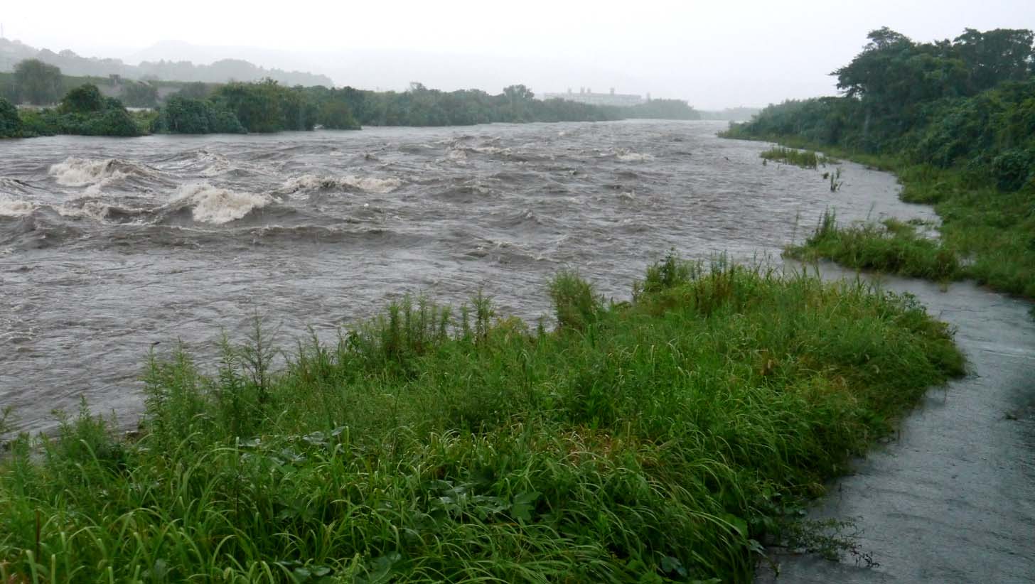 そのため大分県は南部・東部・中部地方へ断続的に雨が落ち続け、山や田畑の保水力はすでになくなり、今は降った雨がそのまま河川に流れ込んでいるのです。