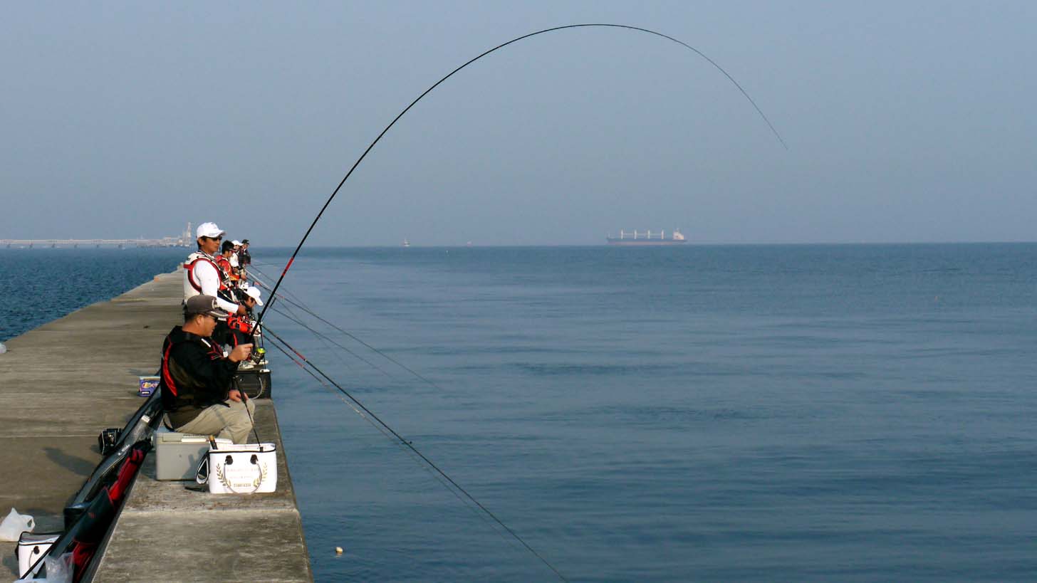 トビエイ釣りの竿曲げ カンダイ釣りの竿曲げ