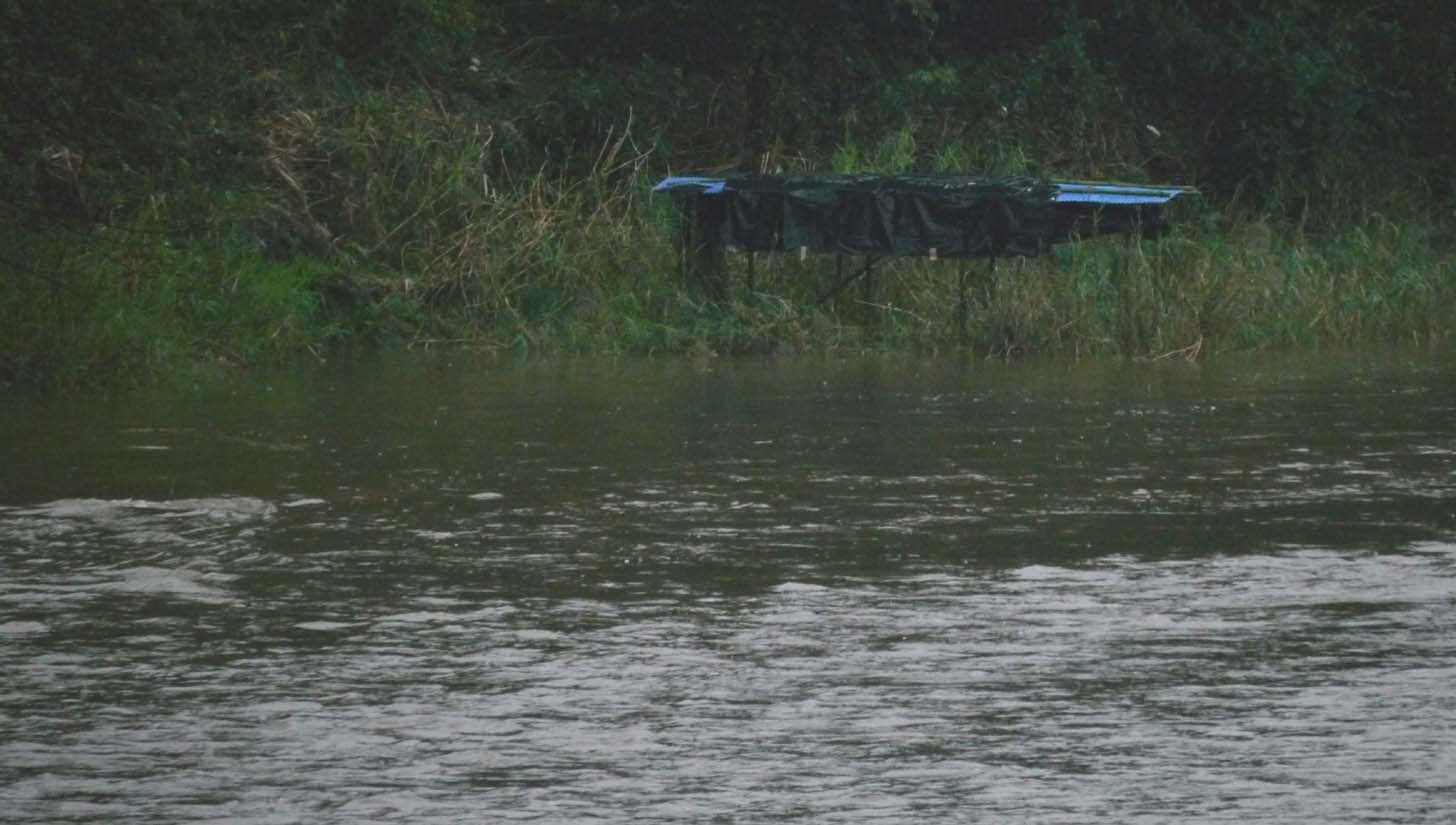 この雨のおかげで新たに作った鳥見基地が浸水。
