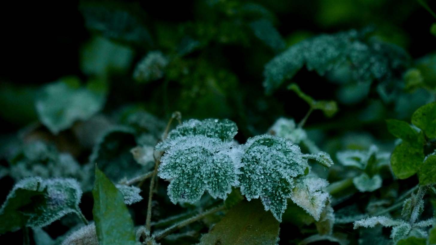霜の降りている場所を通り、カラスザンショウの木をチェック。