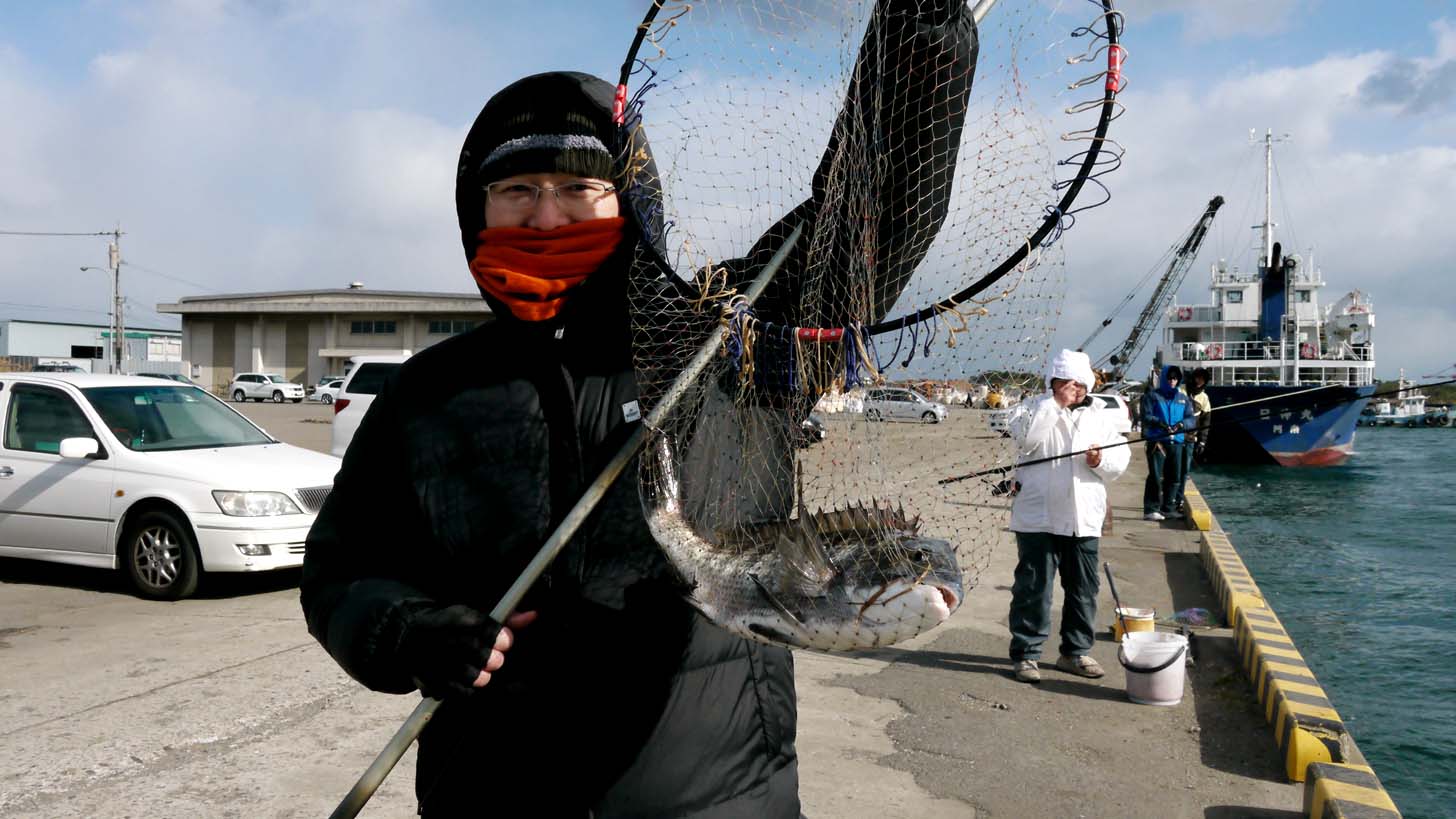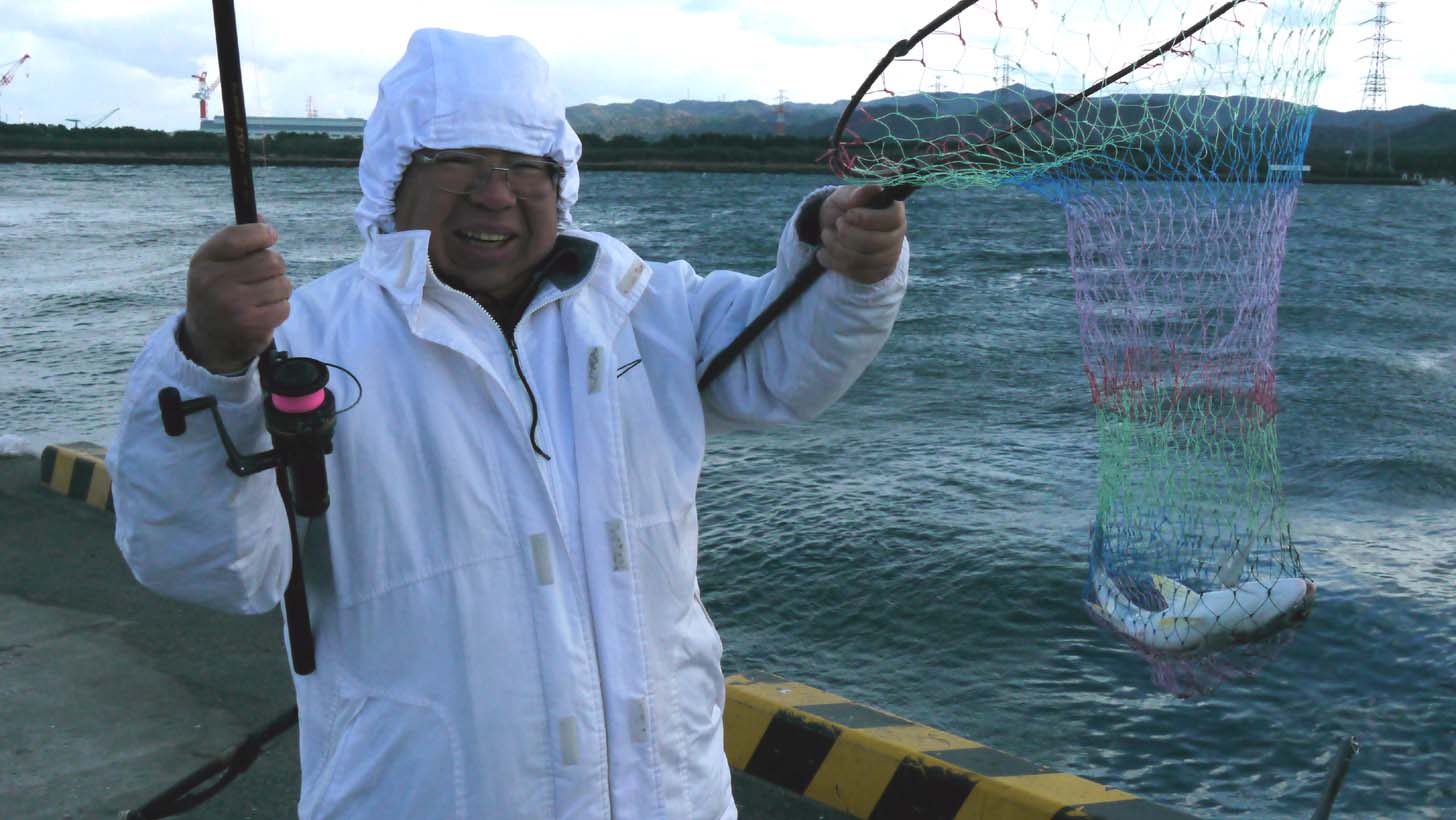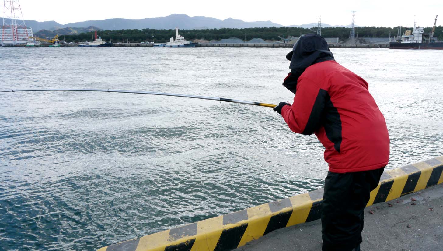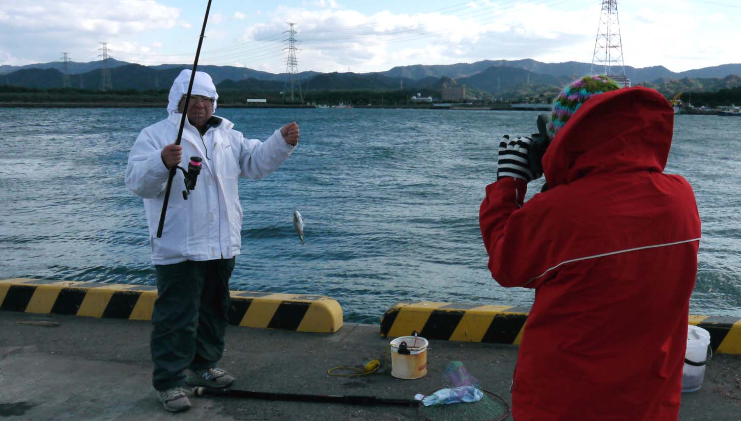 初心者コースは防波堤からのチヌ釣り。北西風を避けてポイントに選んだのは、大在公共埠頭の通称“砂置き場”。水深は6m前後と比較的浅場です。