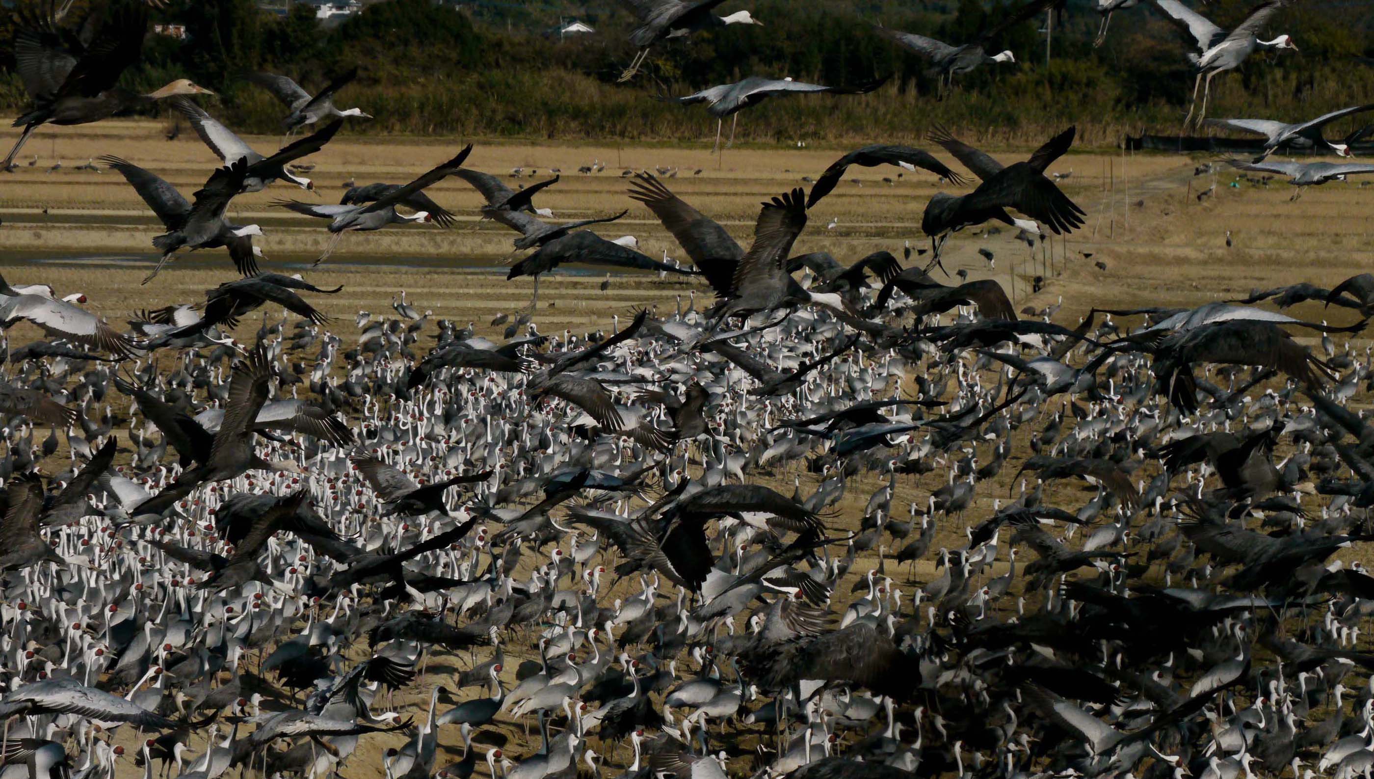 約1万羽。マナヅルとナベヅルがほとんどです。