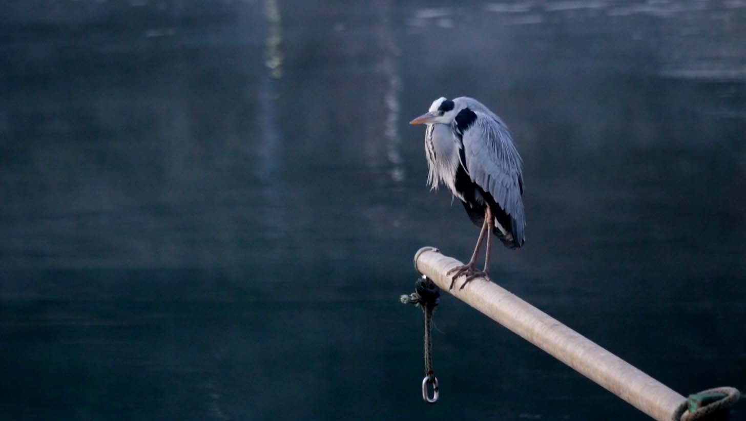 アオサギは沢山来て、捨てられる小魚を食べていました・・・寒そ~~