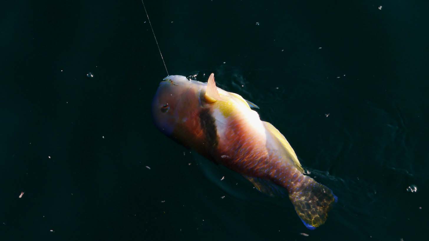 波止際狙いに変更すると2匹のイラ。