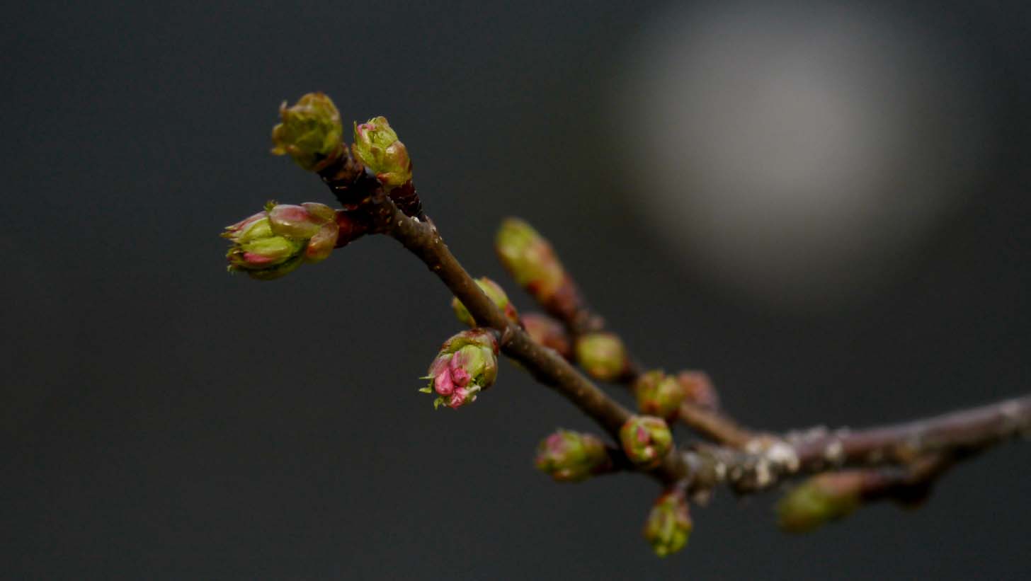 県民の森にある大島桜、いつもより10日は遅い蕾です