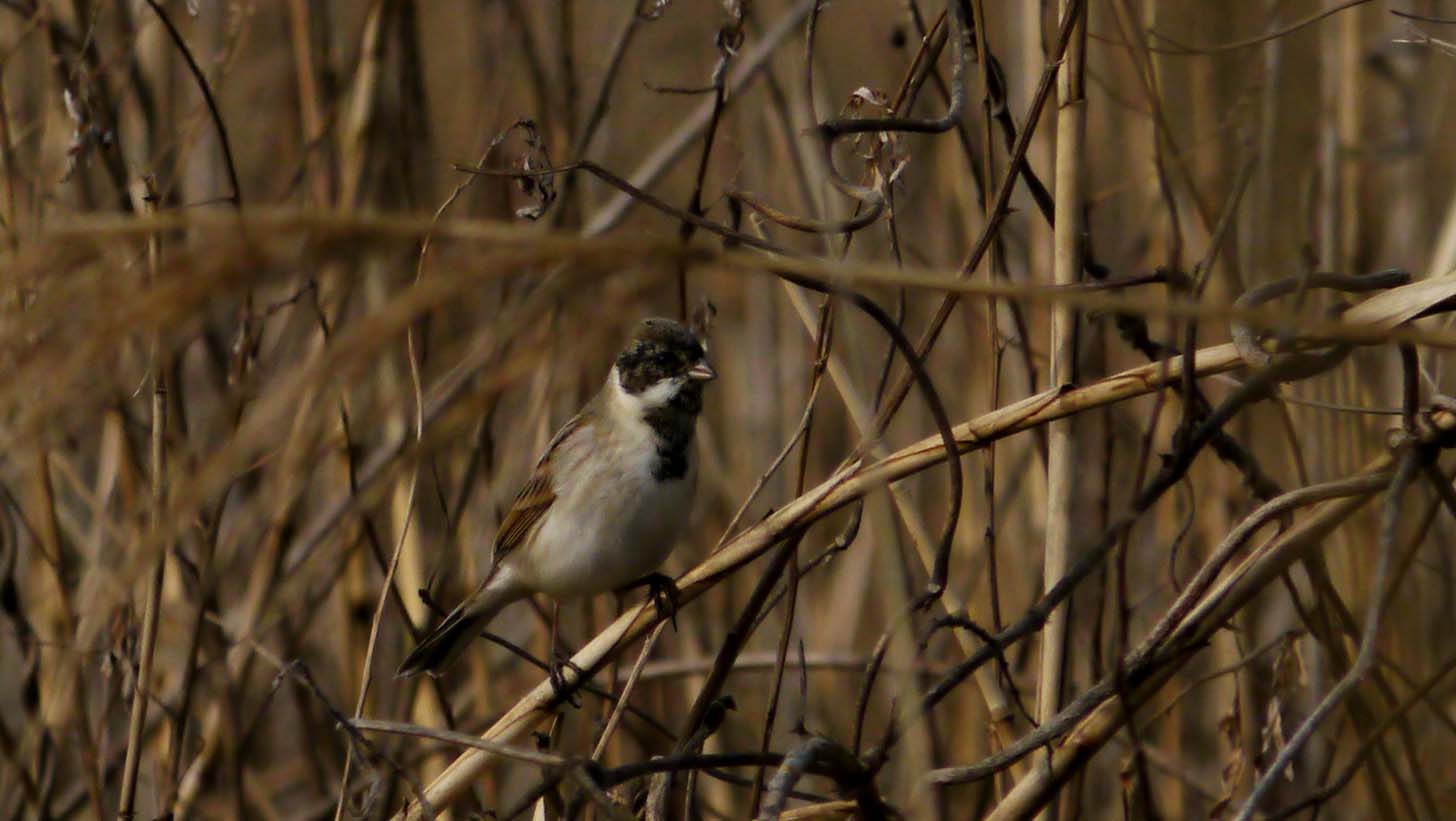 七瀬川の河原では、オオジュリンが数羽で揺れていました
