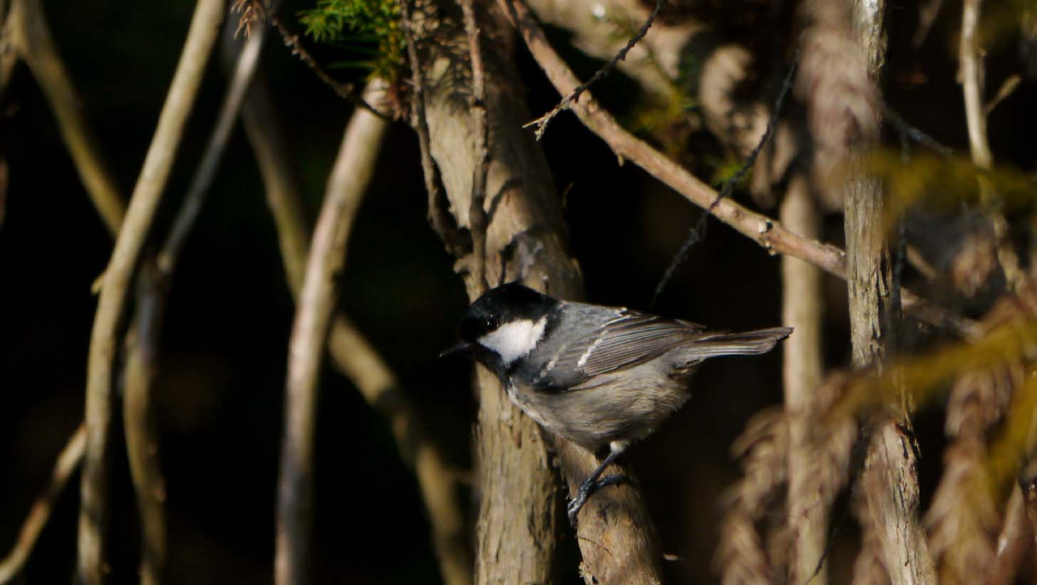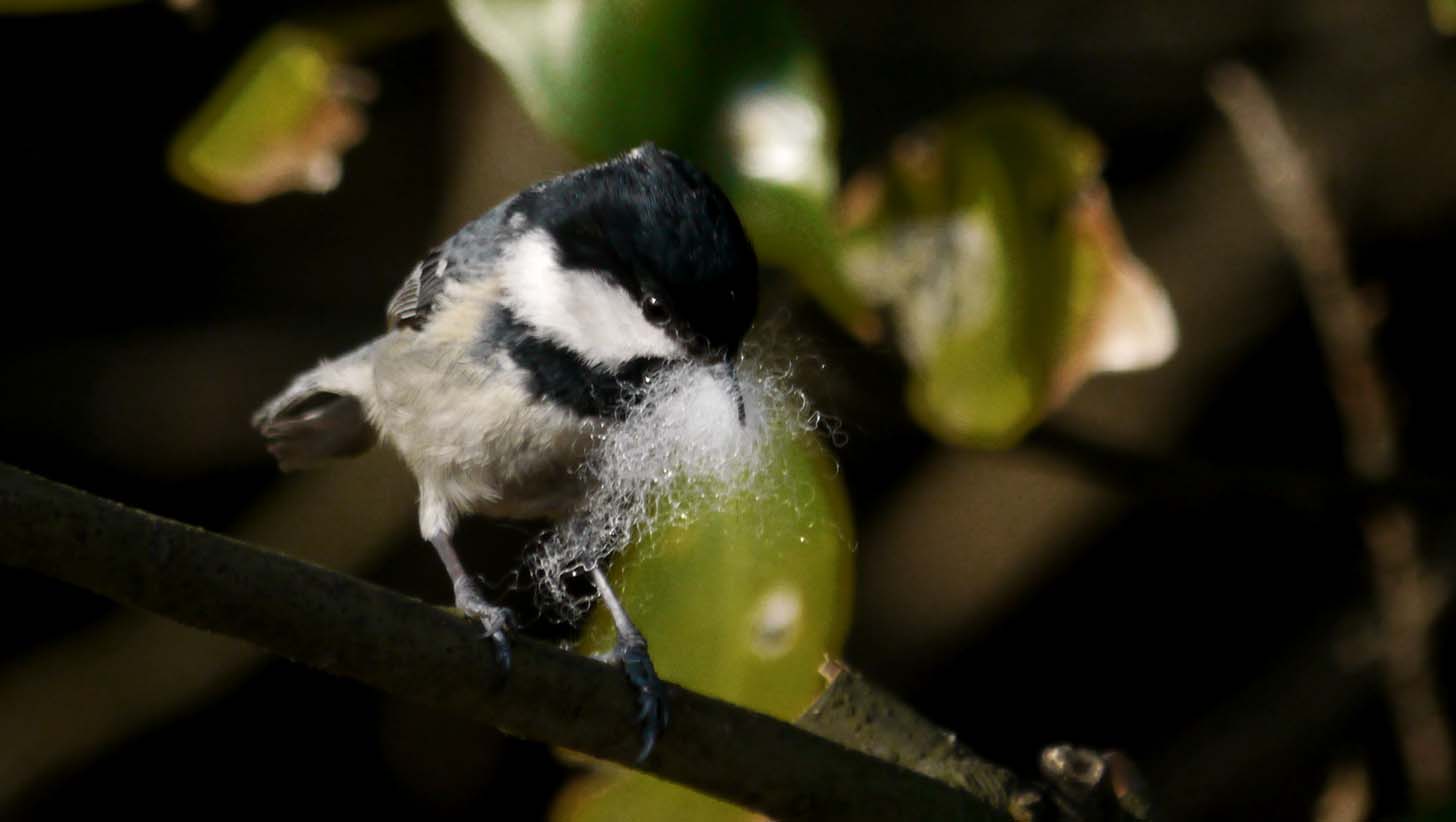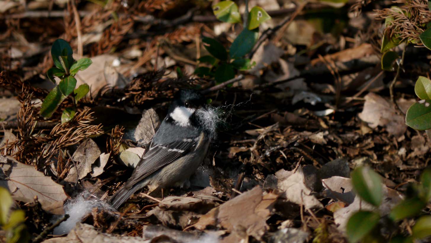 ヒガラが巣材を集めにやってきました。