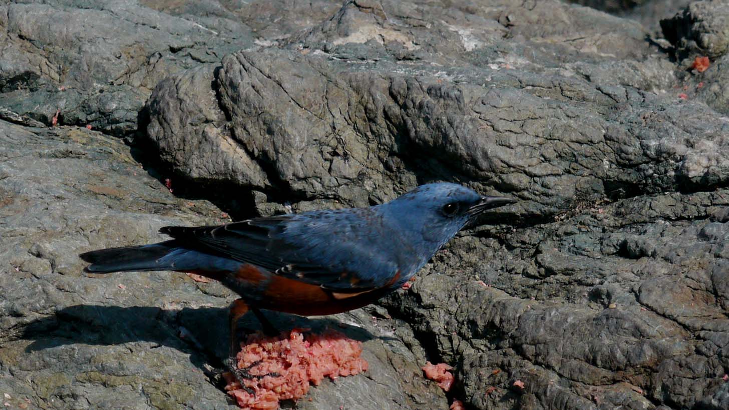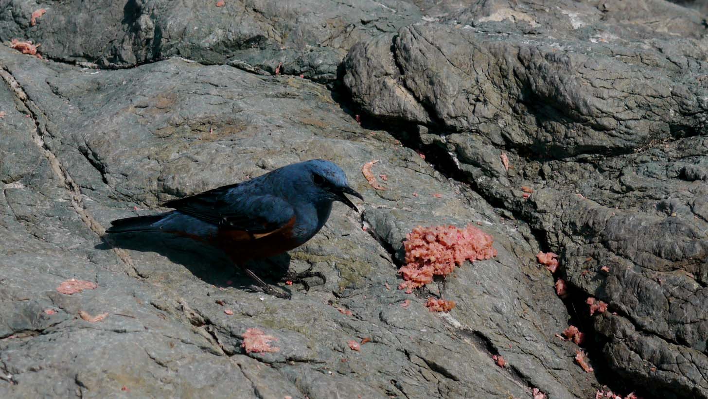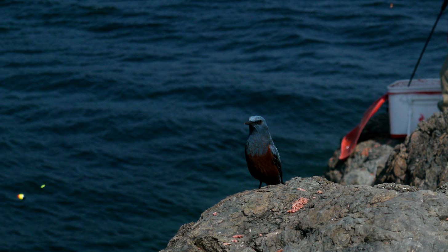 釣り人のいる所にはエサがあるの学習しており、近くに来てオキアミなどが落ちていると、上手く啄ばんでいます。