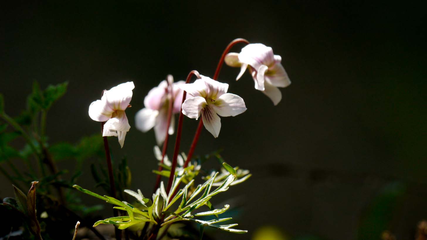 このスミレの葉っぱは、ニンジンみたいな葉が特徴で、他には数種類ほど・・。
