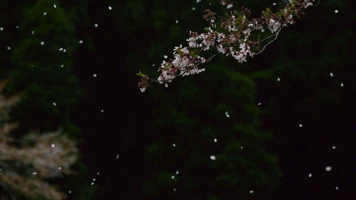 三脚を使って桜吹雪にすれば良かった