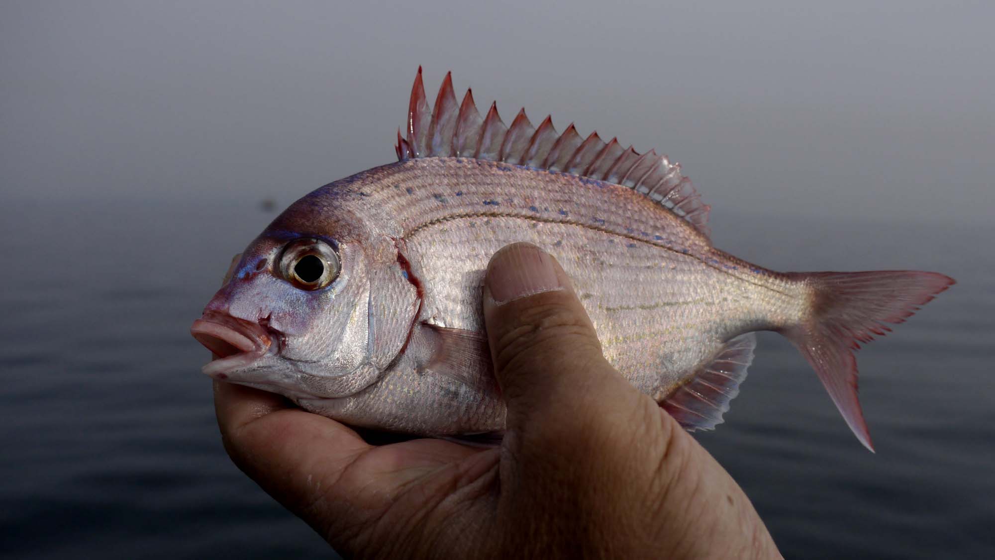 30mほどの遠投でスズメダイを交わし、15m以上の深さまで入れると、フグらしきエサ取りに、オキアミをかすめ取られてしまいます。