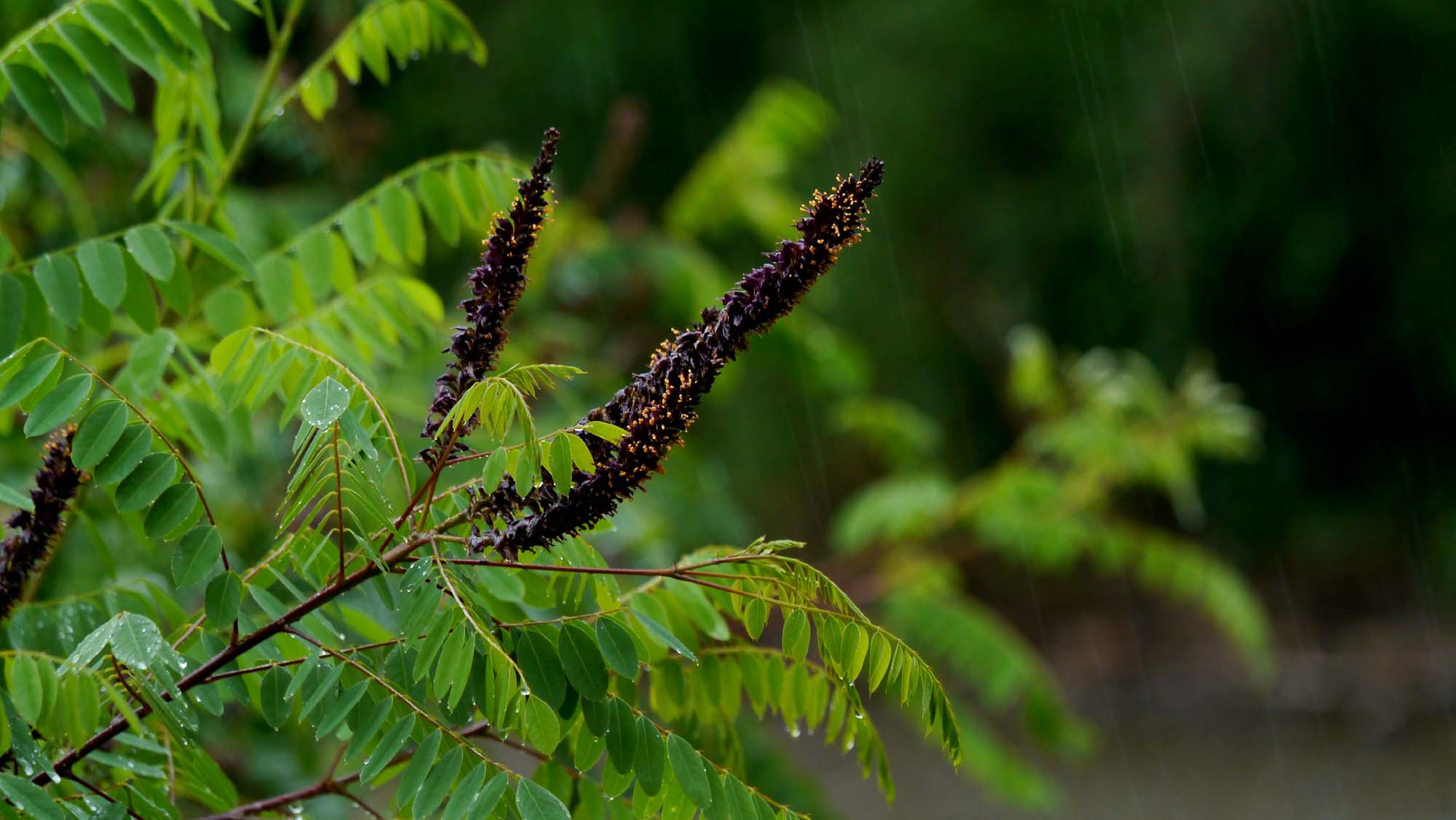 雨は花たちの美しさを一層引き立てます。