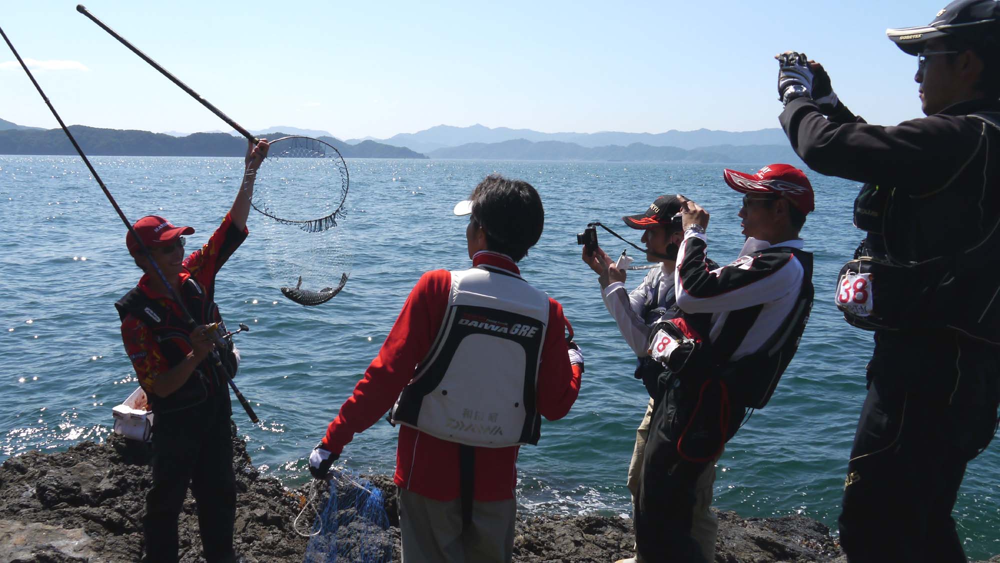 鶴見の湾内が主戦場でしたが、女郎崎周辺・宇土島周辺は中型グレが沢山釣れました。また、宇土島本島では、試合に負けた人が52・3㎝の大型を釣っていました。他には、丹賀の赤岩で沢山釣れた情報もあります。