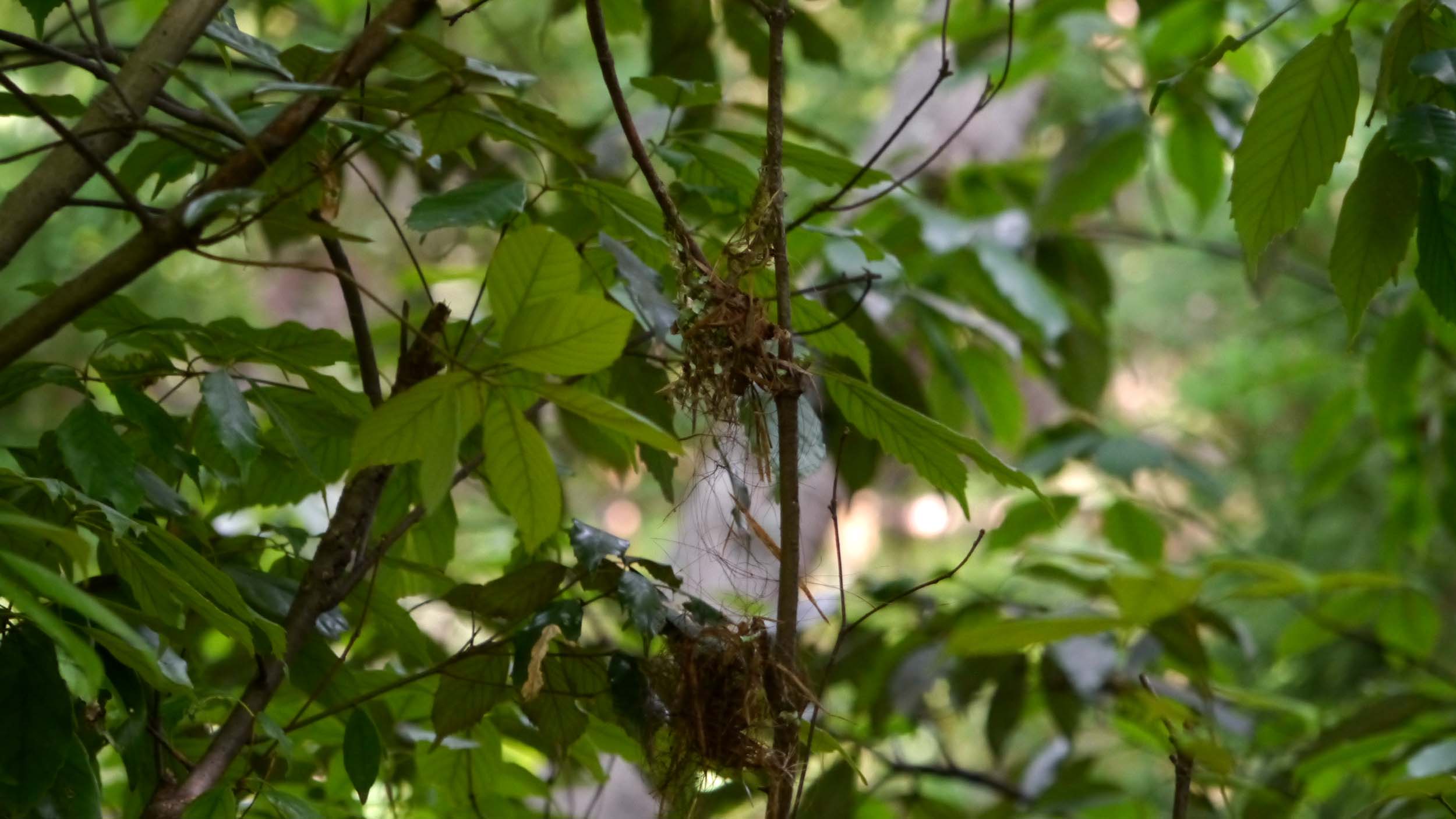 抱卵中なので、チェックは控えめにして6月3日に20分ほど、そして今日チェックを入れたところ、巣が壊されていました。推定ですがカラスの仕業?