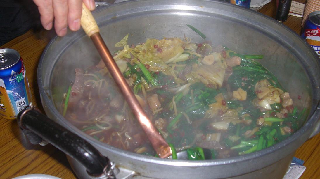 北友会との初釣りは、いつもの様にモツ鍋から始まる。
