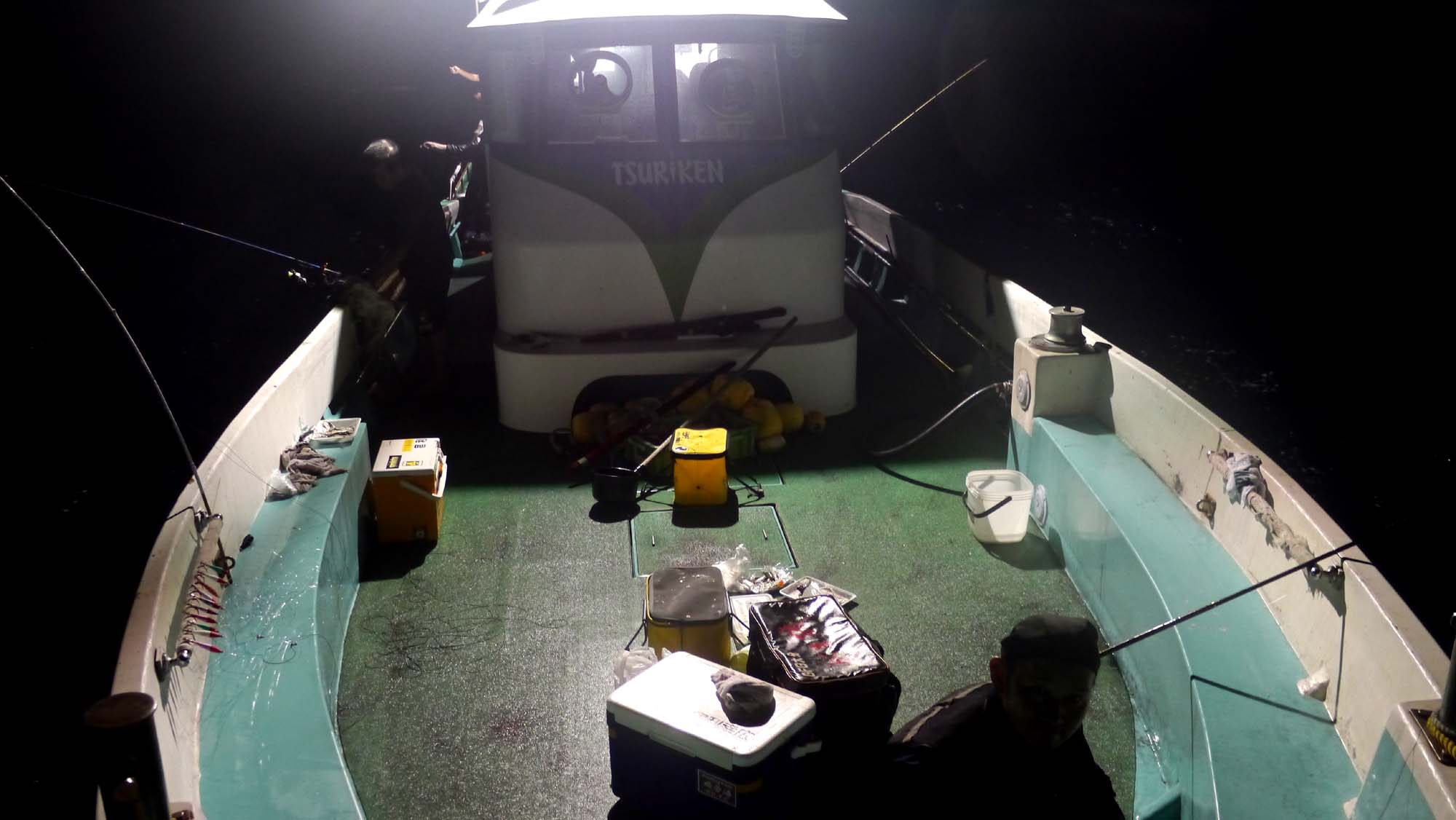 17時30分出港~翌日2時の納竿でした。釣果は年々少なくなる傾向で、今年の私は24杯だけでした。でも船長曰く、昨日までは小型が多かったけど、今夜は今年一番の大型が釣れている・・・らしい。