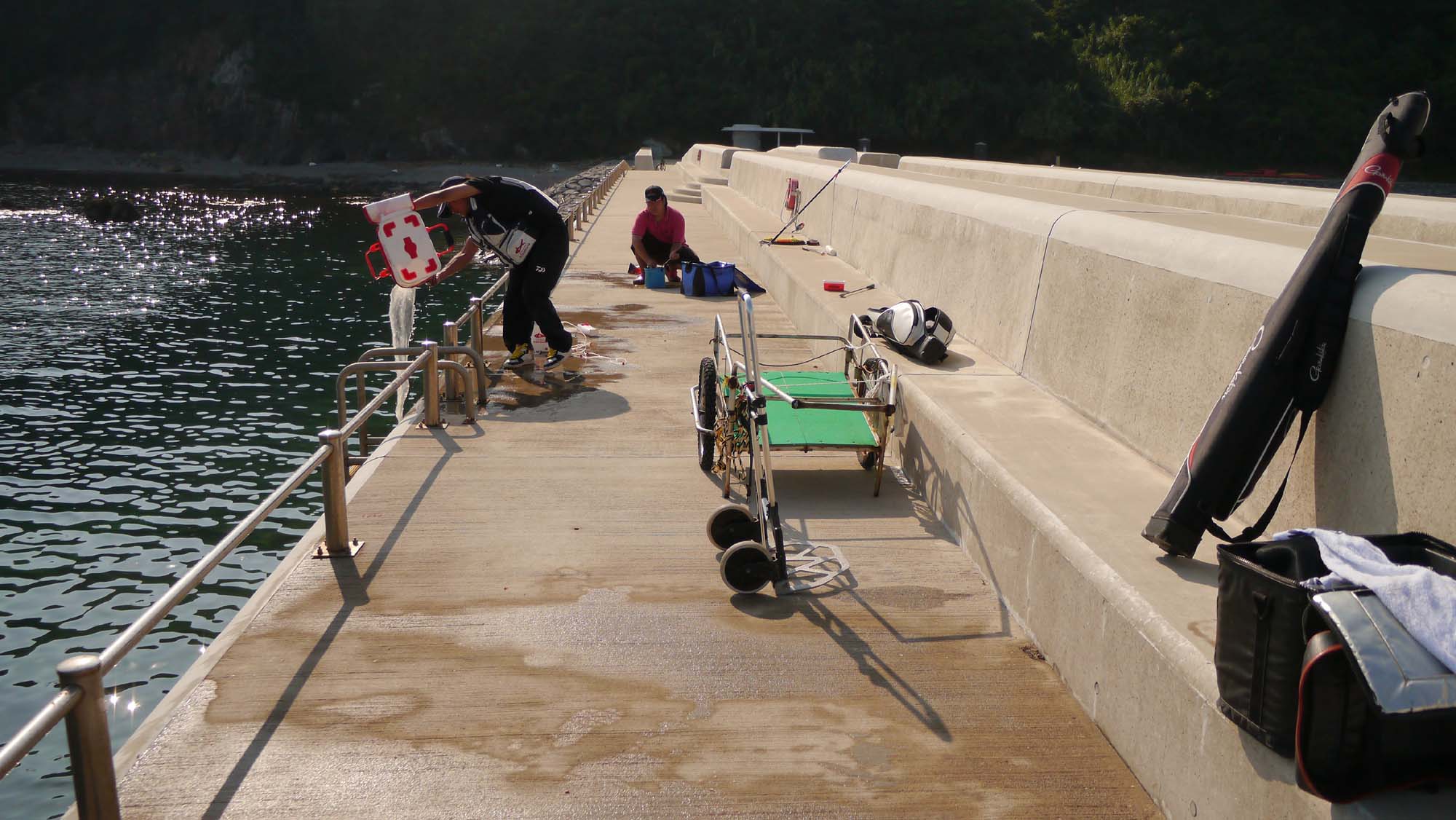 防波堤から内側向きでアジを狙いました