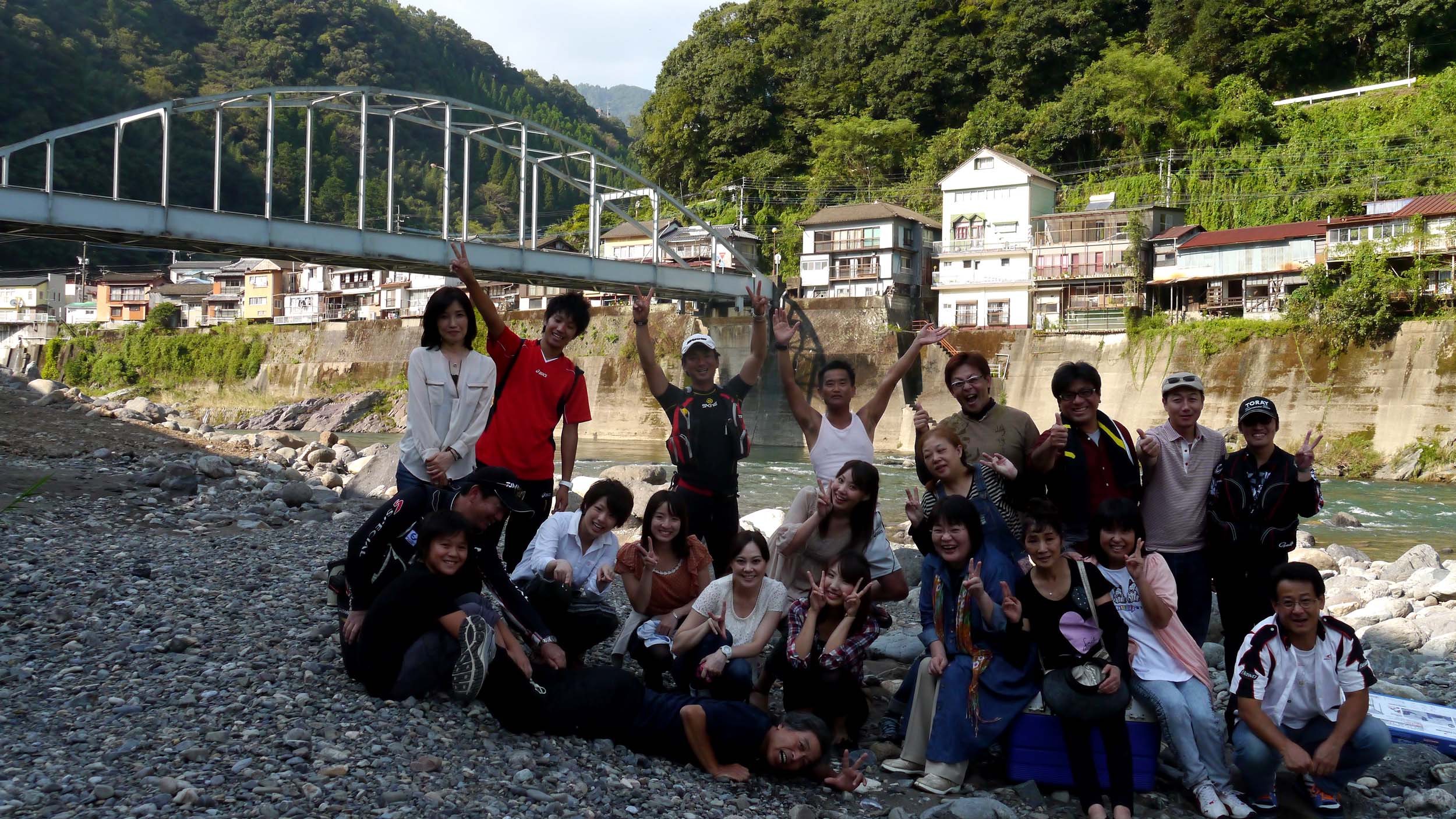 大分からマイクロバスで、道草をしながら五ヶ瀬川へ向かいました。