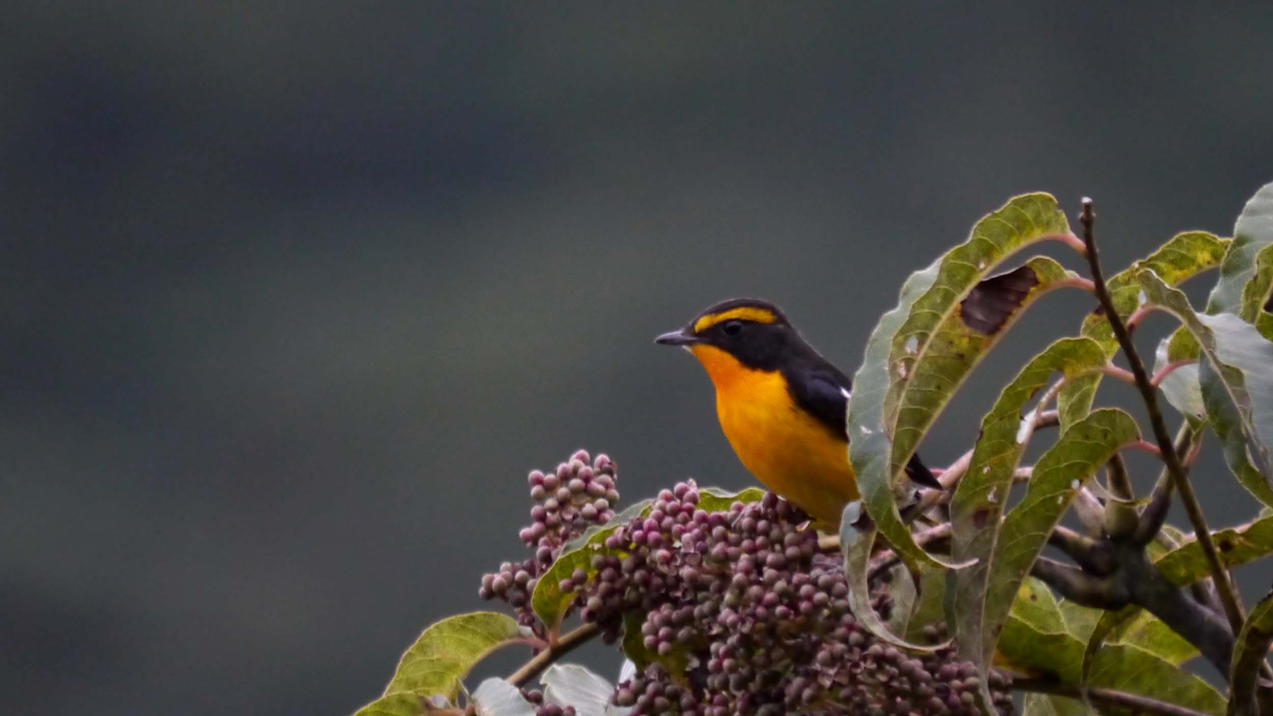 一昨日、一本のカラスザンショウの実を、エゾビタキが食べていました。