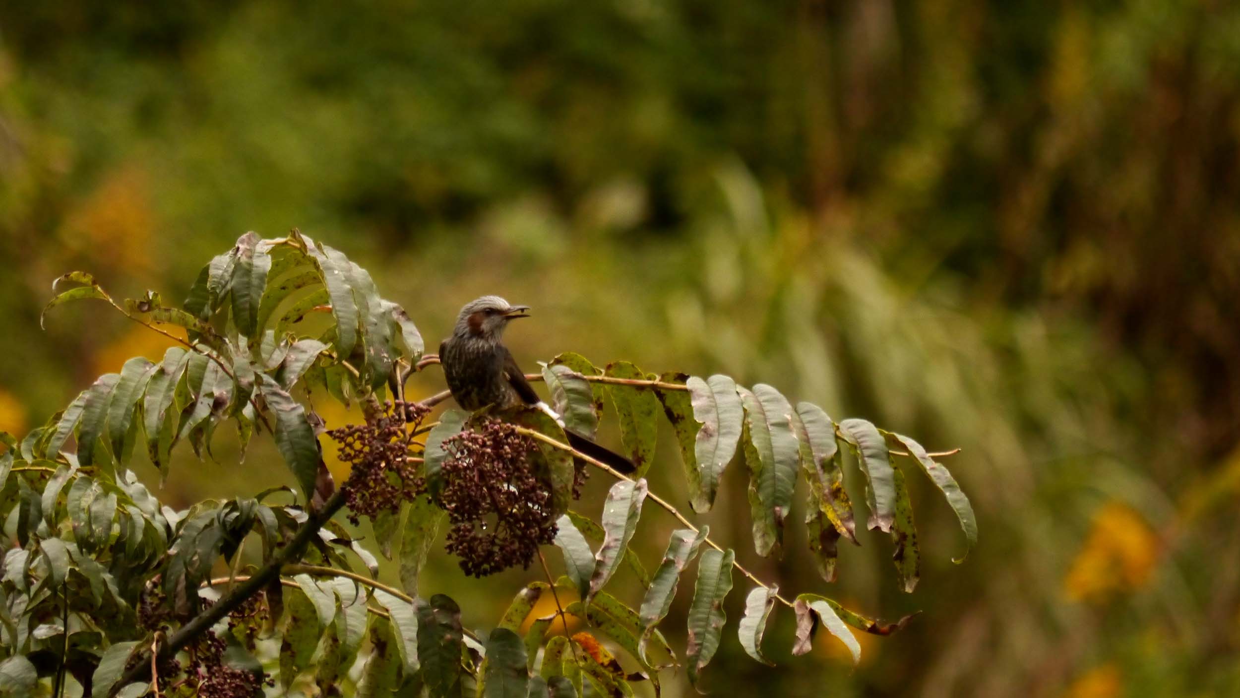 色々な小鳥達が、カラスザンショウの実を食べています。