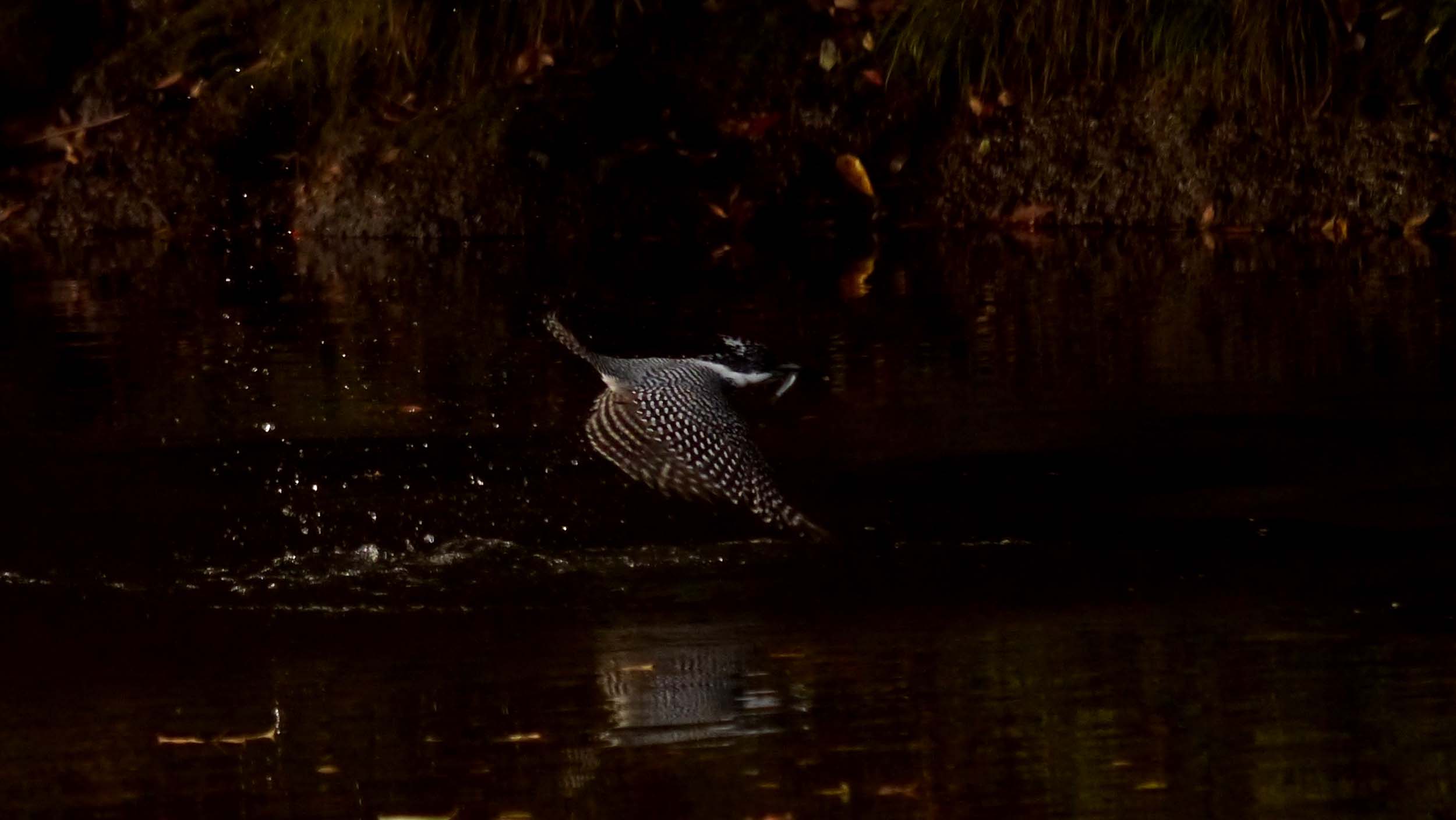 狩り場の枝の高さは、水面から3m~10mくらいの高さが多く、私が見た限りでは15mくらいの枝からも、川に突っ込んでいます。食事場は低い枝や岩の上などが多く、狩り場の枝に持って行く事は少ないみたいです。