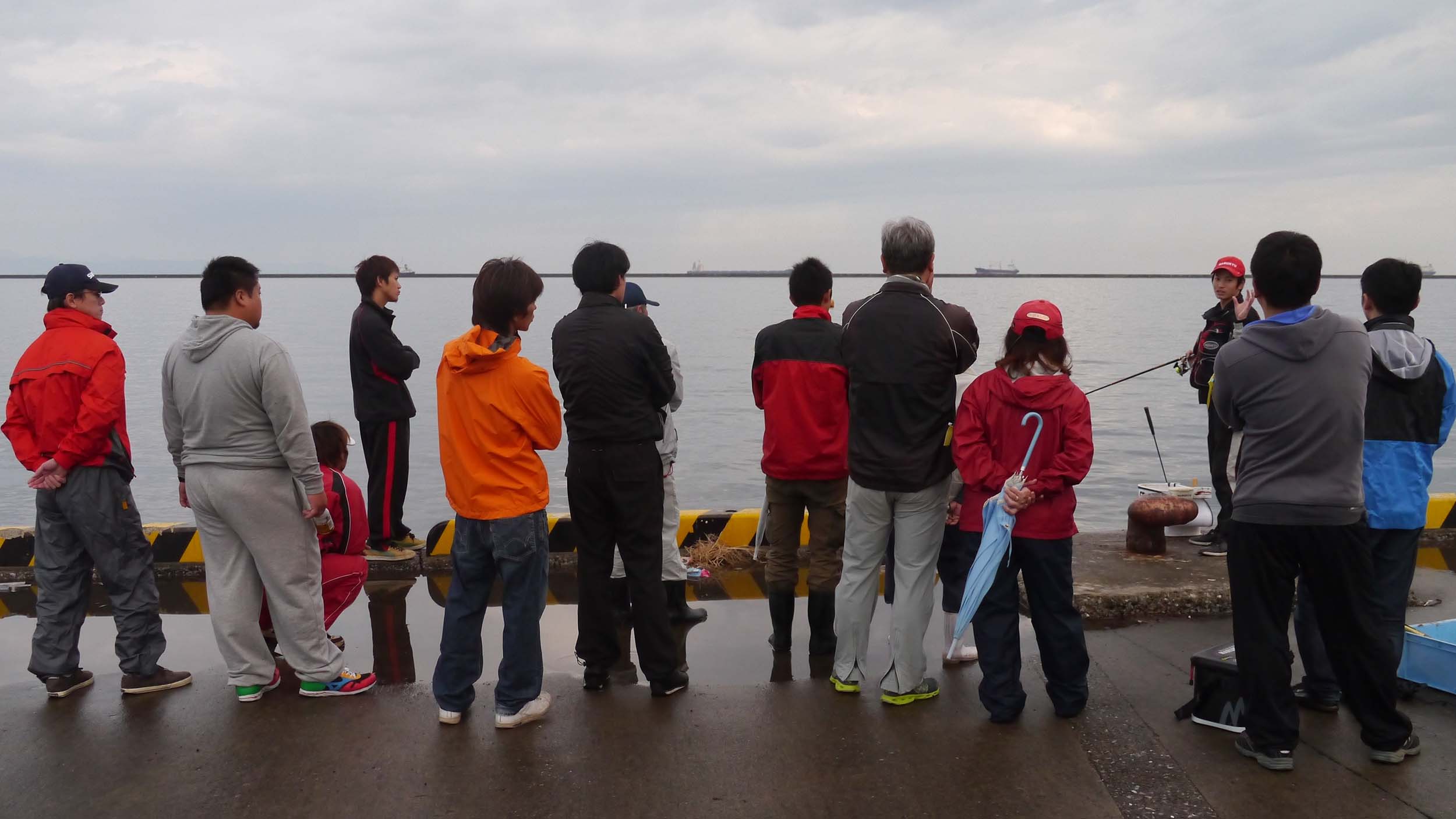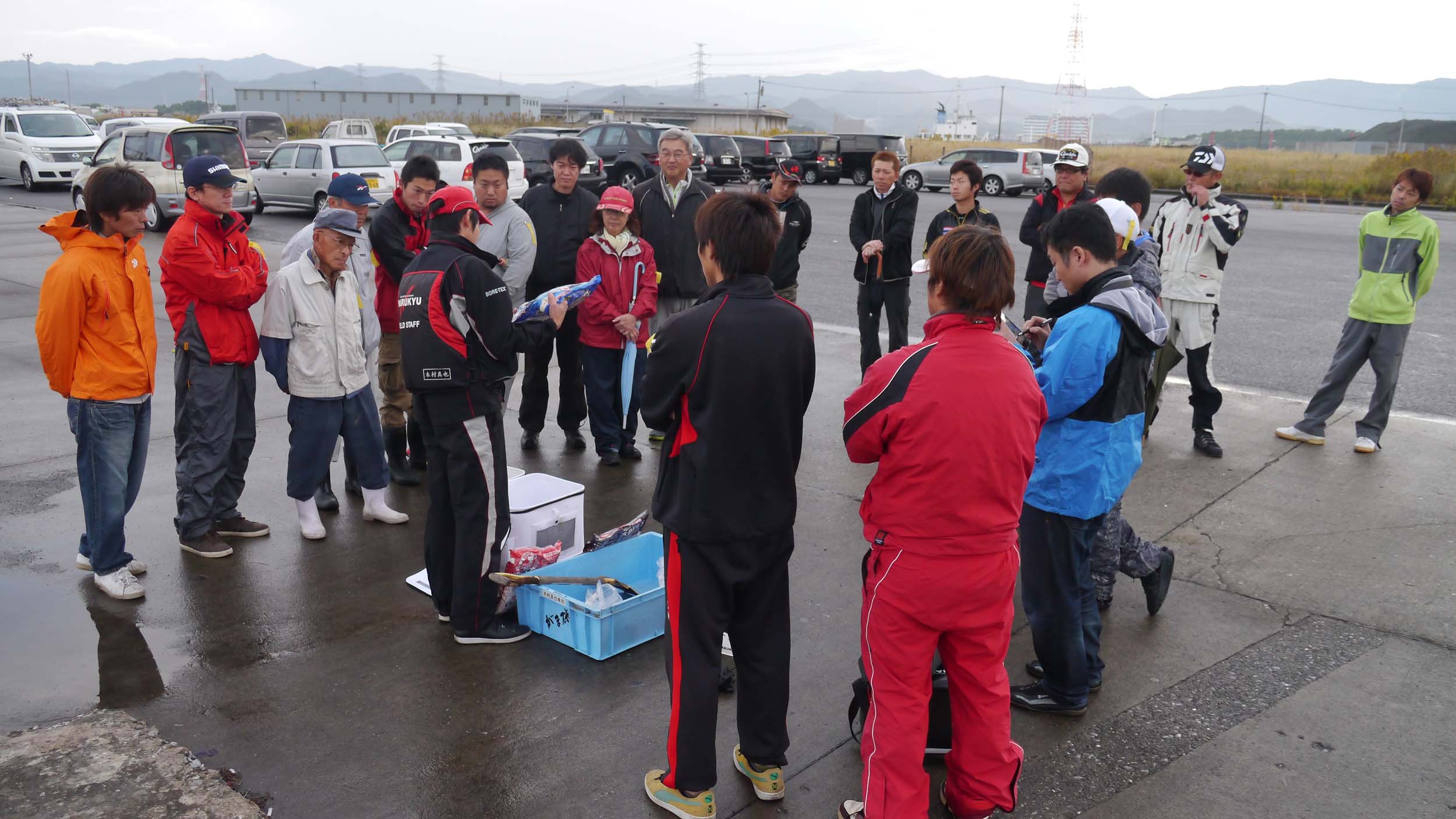講師は大分のチヌ釣りをリードする、木村真也君。最先端のチヌ釣りを学ぶべく集まった人の中には70歳を超えるお爺ちゃんも・・。