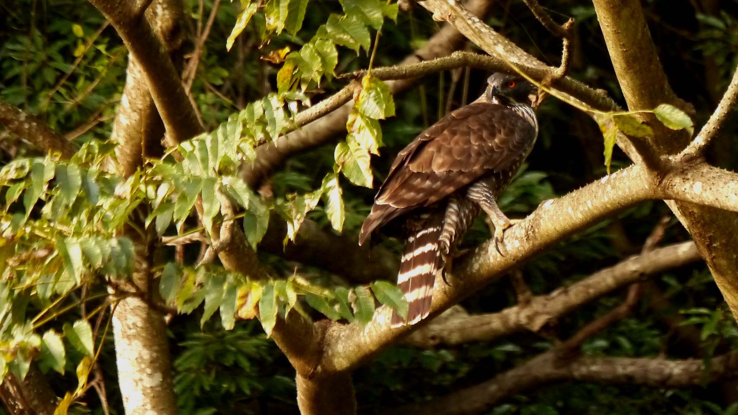 撮った猛禽の写真を確認し、中型の哺乳類やヤマドリ・カケスなどを捕食する、クマタカと判断しました。大きさから♂ではないかと思っています。
